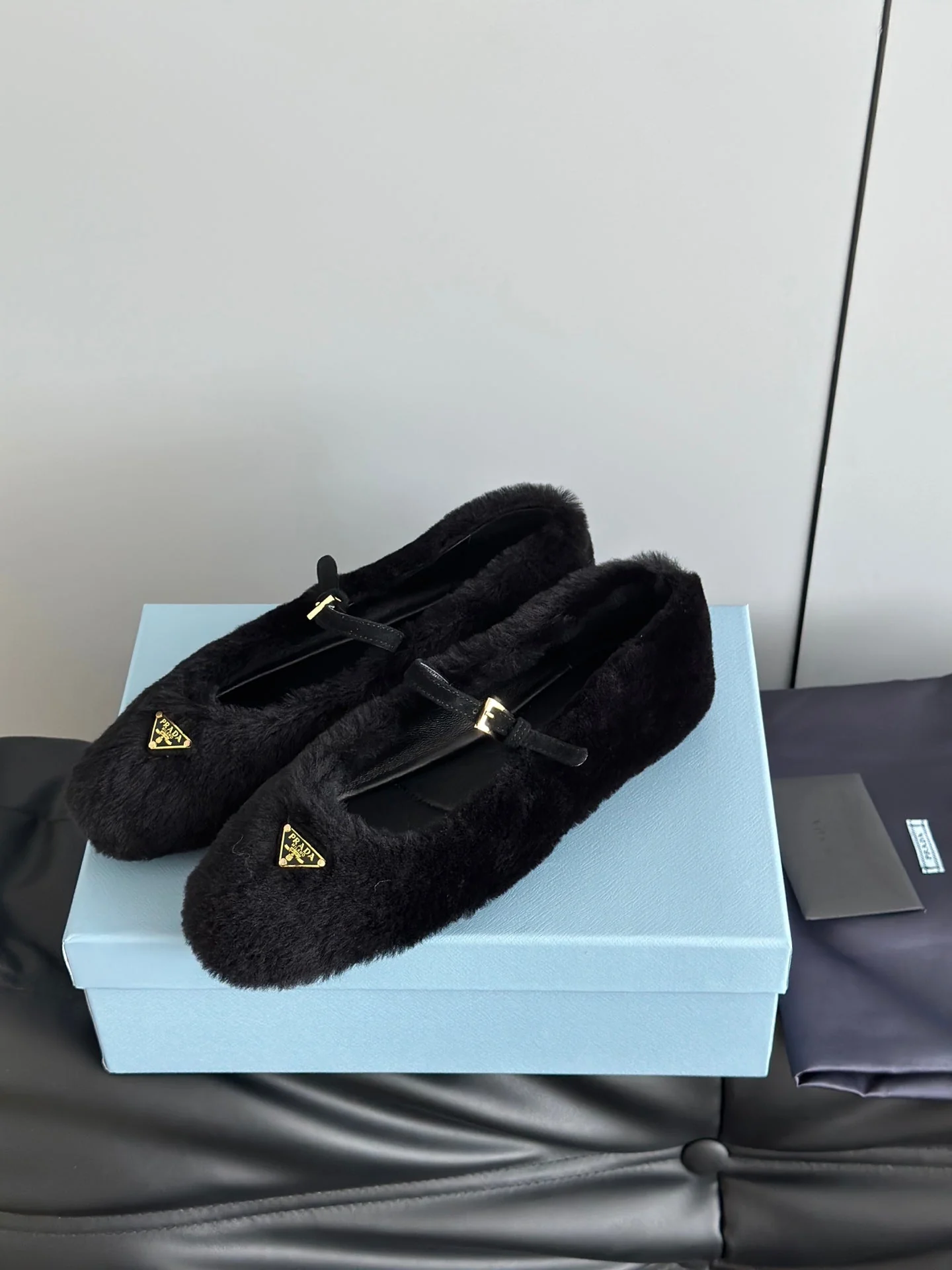 Prada 25s Mary Jane Ballet Flats Black Wool 538454