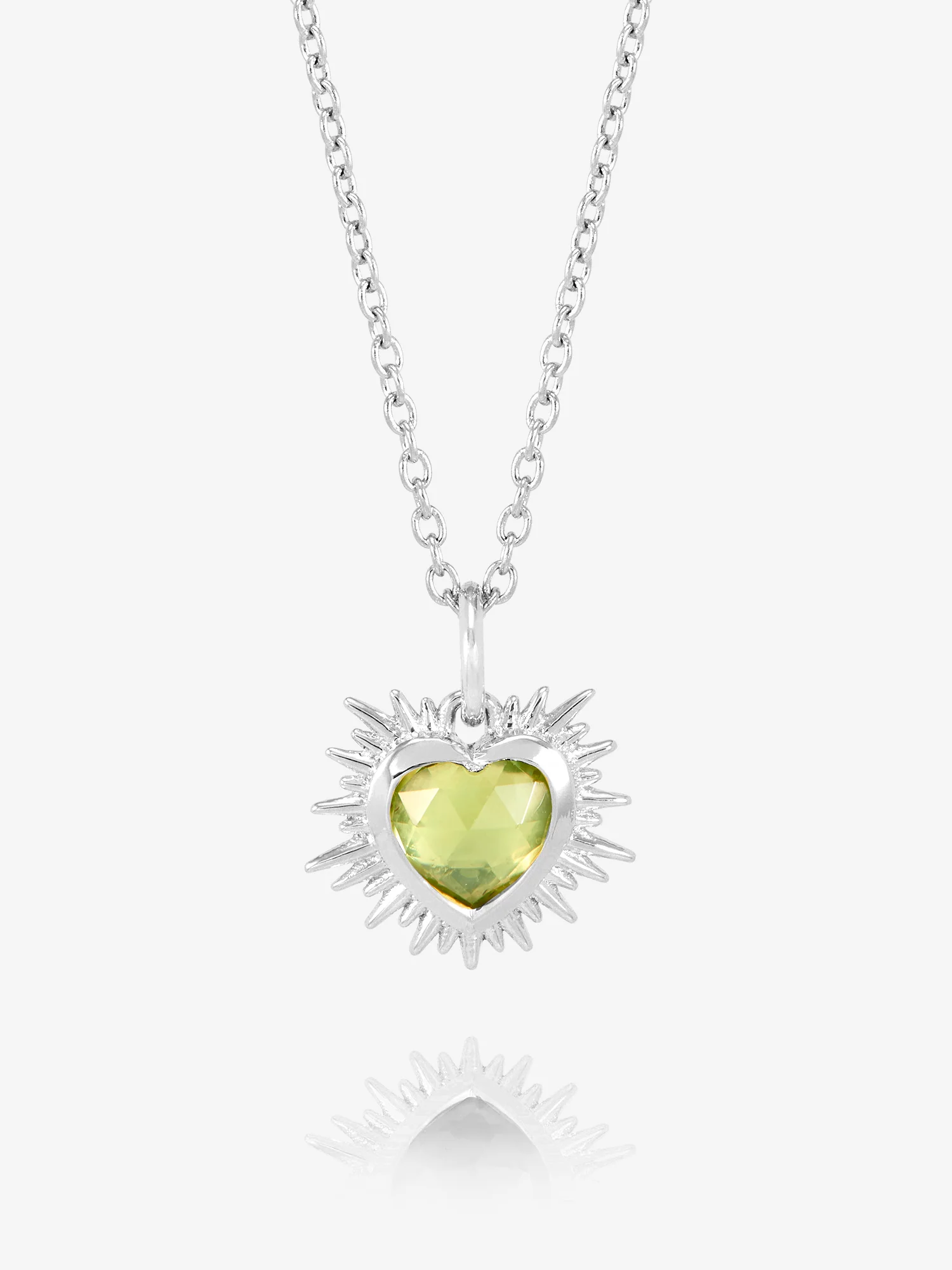 Rachel Jackson Electric Love Birthsone Heart Necklace Silver AUGUST