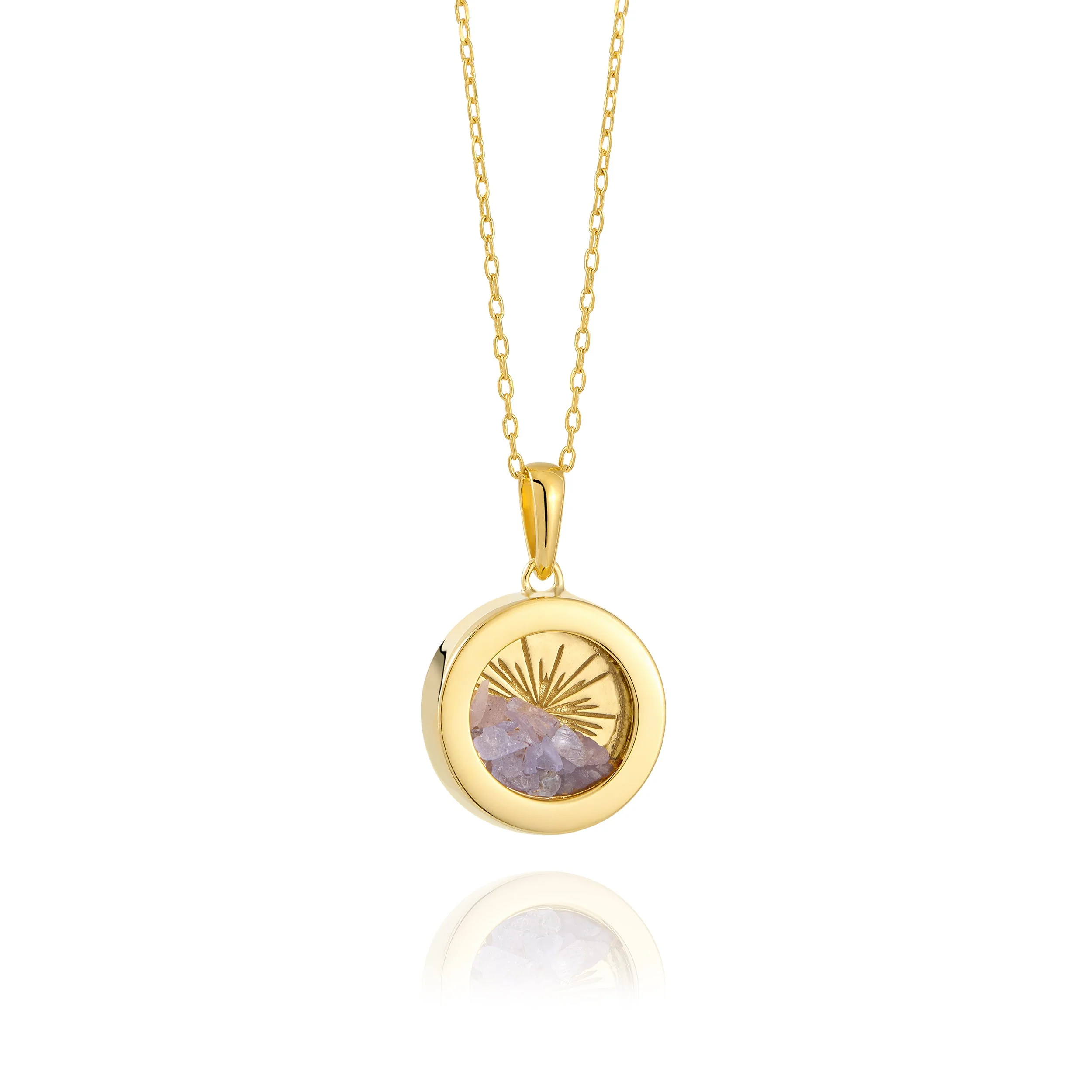 Rachel Jackson Small Deco Sun Amulet Birthstone Necklace Tanzanite