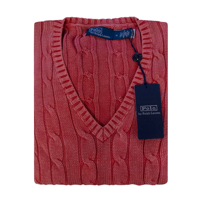 Discover timeless style combined with exquisite comfort in the Ralph Lauren Polo Cable-Knit V-Neck Jumper in a striking Coral. Perfect for adding a chic touch to any ensemble, this jumper from Ralph Lauren is a wardrobe essential, offering versatile sophistication at incredible value.