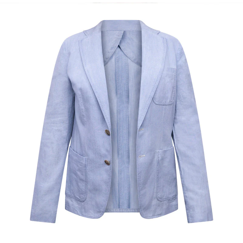 The blazer showcases classic notched lapels, front button single breasted fastening, and three practical patch pockets. Perfect for a day at the office or a leisurely outing, this versatile piece offers a chic, polished look while keeping you effortlessly stylish.