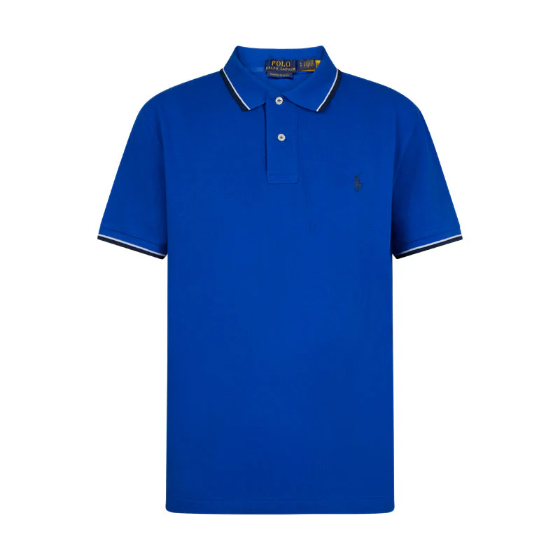 Ralph Lauren Polo Slim Fit Stretch Mesh Polo Shirt Blue With Striped Collar – Mens