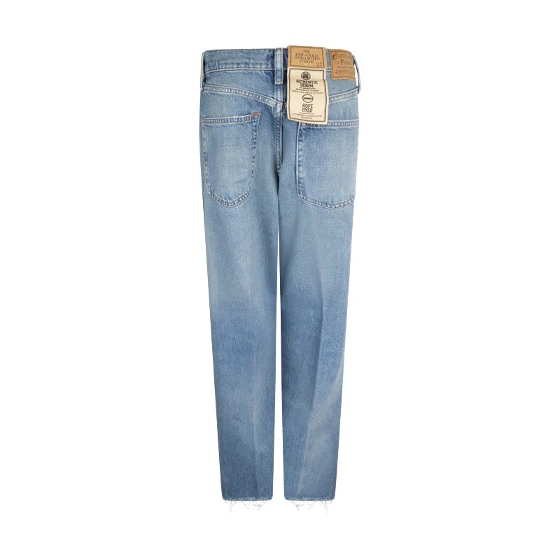Experience style and comfort with the Ralph Lauren Polo High-Rise Relaxed Straight Crop Jeans for women. These jeans are crafted from lightweight Turkish denim, offering a laid-back yet refined aesthetic. With a defined twill line and medium wash, they deliver a vintage-inspired appearance enhanced by hand-sanding and whiskering.