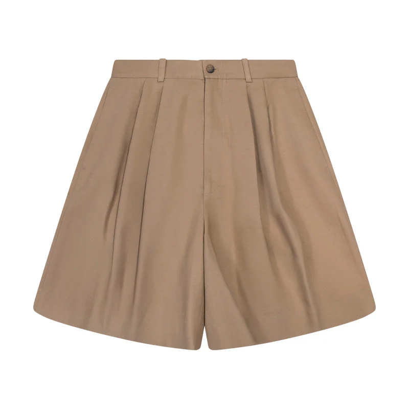 The shorts feature a timeless pleat design that flatters your silhouette, offering a blend of comfort and elegance. Thoughtfully designed with belt loops, rear button, and zip fastening, they ensure a seamless fit every time. Practicality meets style with two side slit pockets to keep your essentials close at hand.