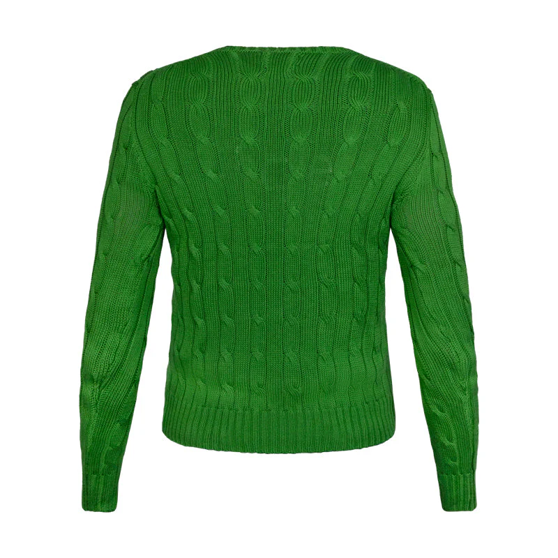 This sweatshirt, knitted from the finest Pima cotton, delivers an unparalleled soft touch, ensuring both warmth and style for the modern woman. Its vibrant green hue provides a fresh pop of colour, making it a versatile piece for any season.
