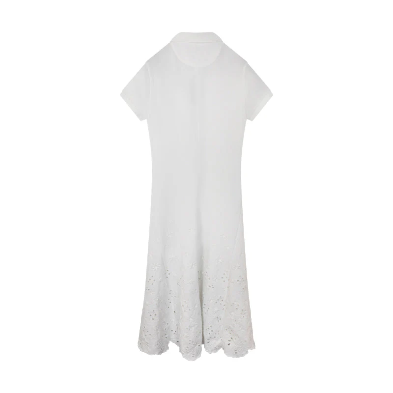The dress is crafted with premium breathable materials, ensuring comfortable wear throughout the day. Its polo collar and button placket add a sporty touch, while the eyelet detailing offers a hint of sophistication, making it versatile for various occasions. Whether you’re dressing it up for a special event or opting for a casual day out, this piece delivers effortless style without compromise.