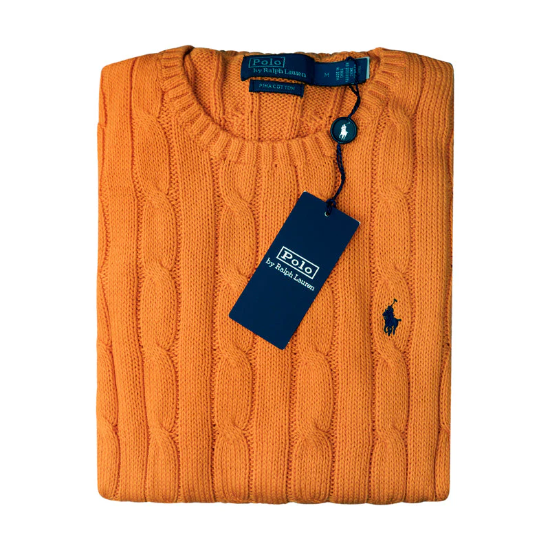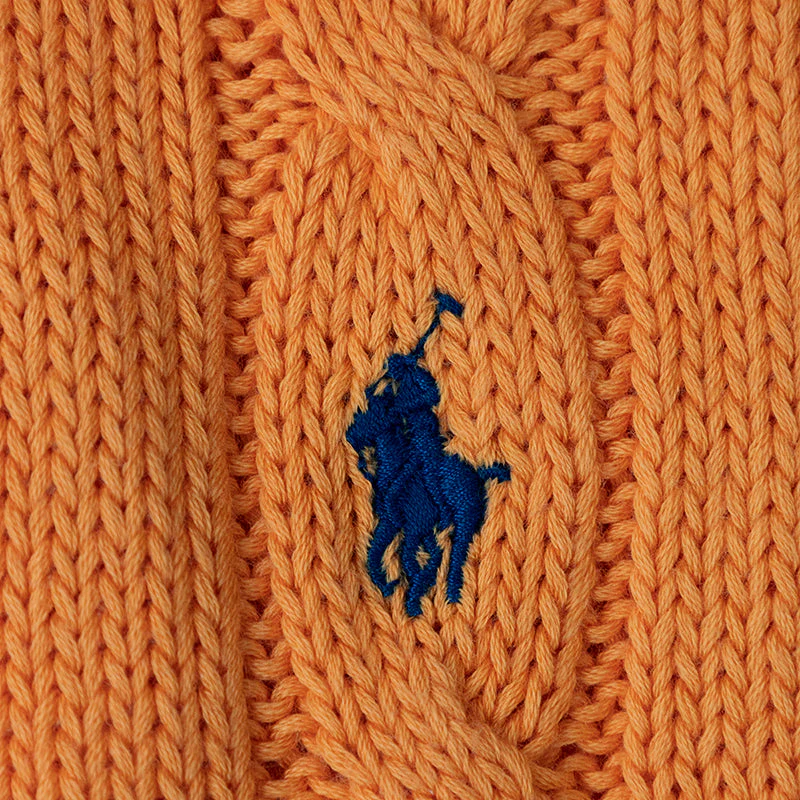 Discover an effortless blend of style and comfort with the Ralph Lauren Polo Women’s Cotton Jumper in a vibrant shade of orange. This pullover features a slim fit that highlights your silhouette, while the soft cable knit cotton ensures breathable comfort throughout your day. Its ribbed neckline, hem, and cuffs offer a classic look with a modern twist. The iconic Polo Ralph Lauren pony is beautifully embroidered on the front, adding a touch of designer elegance.