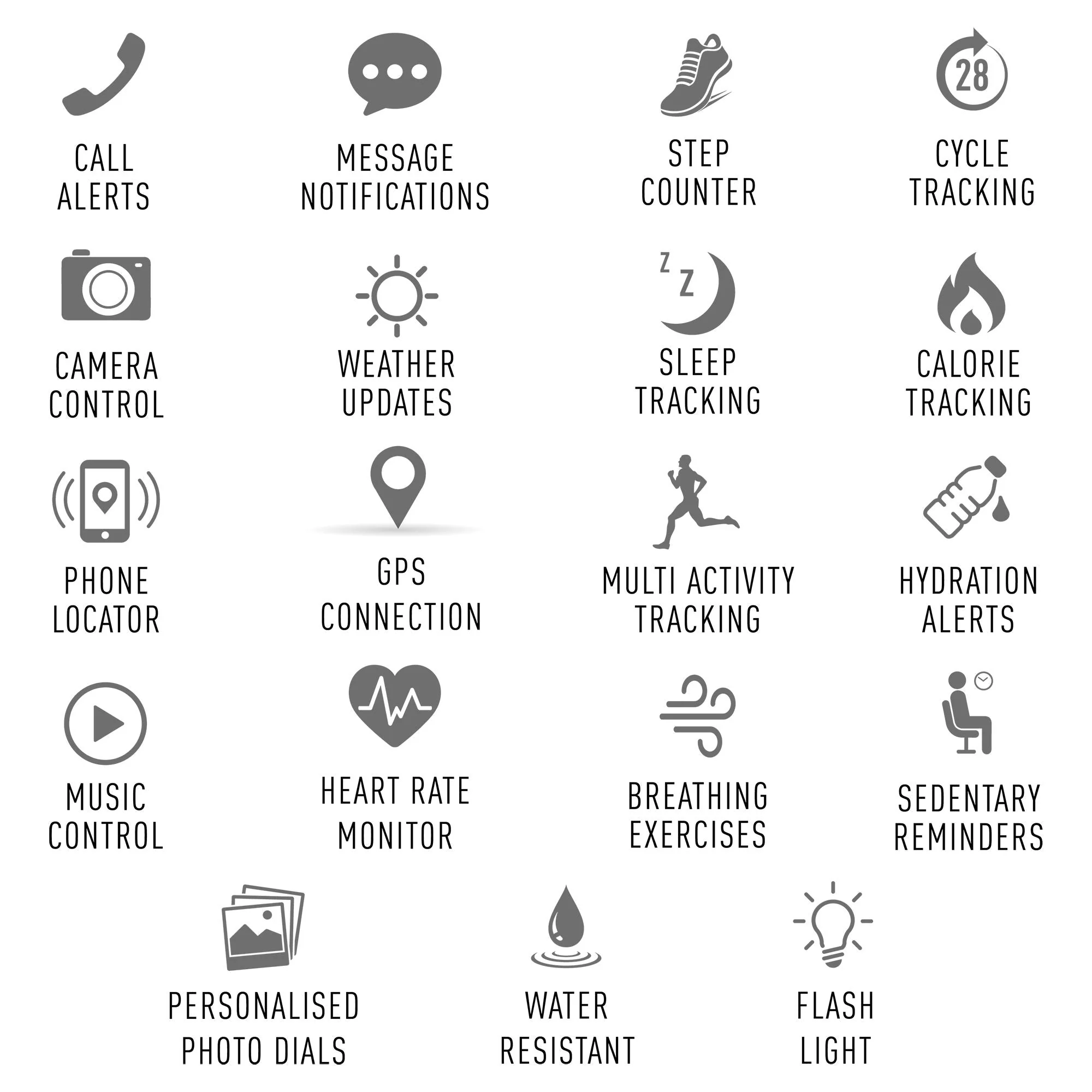 Blending technical finesse with sleek modern design, the Reflex Active Series 12 smartwatch delivers both function and flair. Featuring a navy silicone strap and 42mm black digital display, this unisex smart watch offers up to 10 days of battery life and 50-meter water resistance—ideal for daily wear or active pursuits. Within the watches category, it stands out with an intuitive interface and a host of smart features including heart rate monitoring, multi-activity tracking, call alerts, message notifications, and music control. Personalization meets practicality with photo dials, cycle tracking, hydration reminders, and breathing exercises, while GPS connection and sleep tracking ensure deeper lifestyle insights. A refined choice for those seeking a versatile men’s watch or women’s watch that merges style and smart functionality.