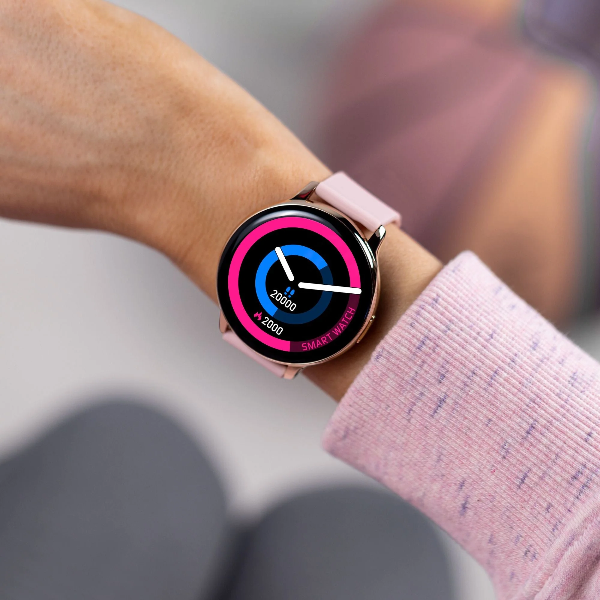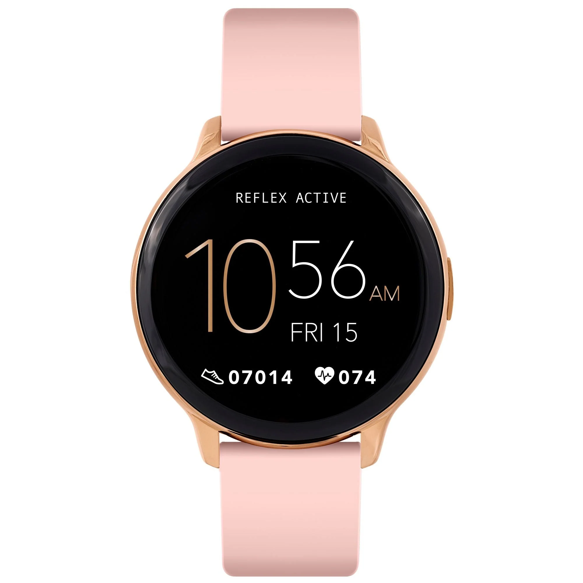 Make a luxurious statement with the Reflex Active Series 14 Smartwatch. Featuring a rose gold case with a comfortable pink silicone strap, this sophisticated timepiece will add a stylish touch to any look. Connect to your phone or tablet to track fitness goals, stay up to date with notifications, and stay connected with voice and video calls. From the boardroom to the gym, the RA14-2142 will keep you looking and feeling your best.