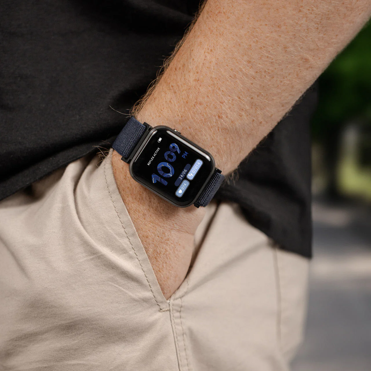 Refined yet functional, the Reflex Active Series 37 blue smart watch blends modern design with advanced technology, making it an essential choice in the smart watches category. Crafted with a sleek 37mm case and a breathable navy fabric strap, it offers comfort and style for everyday wear. The 1.83″ full-touch display allows effortless navigation through features such as hands-free calling, heart rate monitoring, sleep tracking, and music control. With IP68 water resistance, it’s built for both daily wear and active lifestyles. Compatible with Android 9.0+ and iOS 12.0+, this men’s watch includes customizable dials and wellness tools like blood oxygen tracking and hydration reminders to support your personal goals.