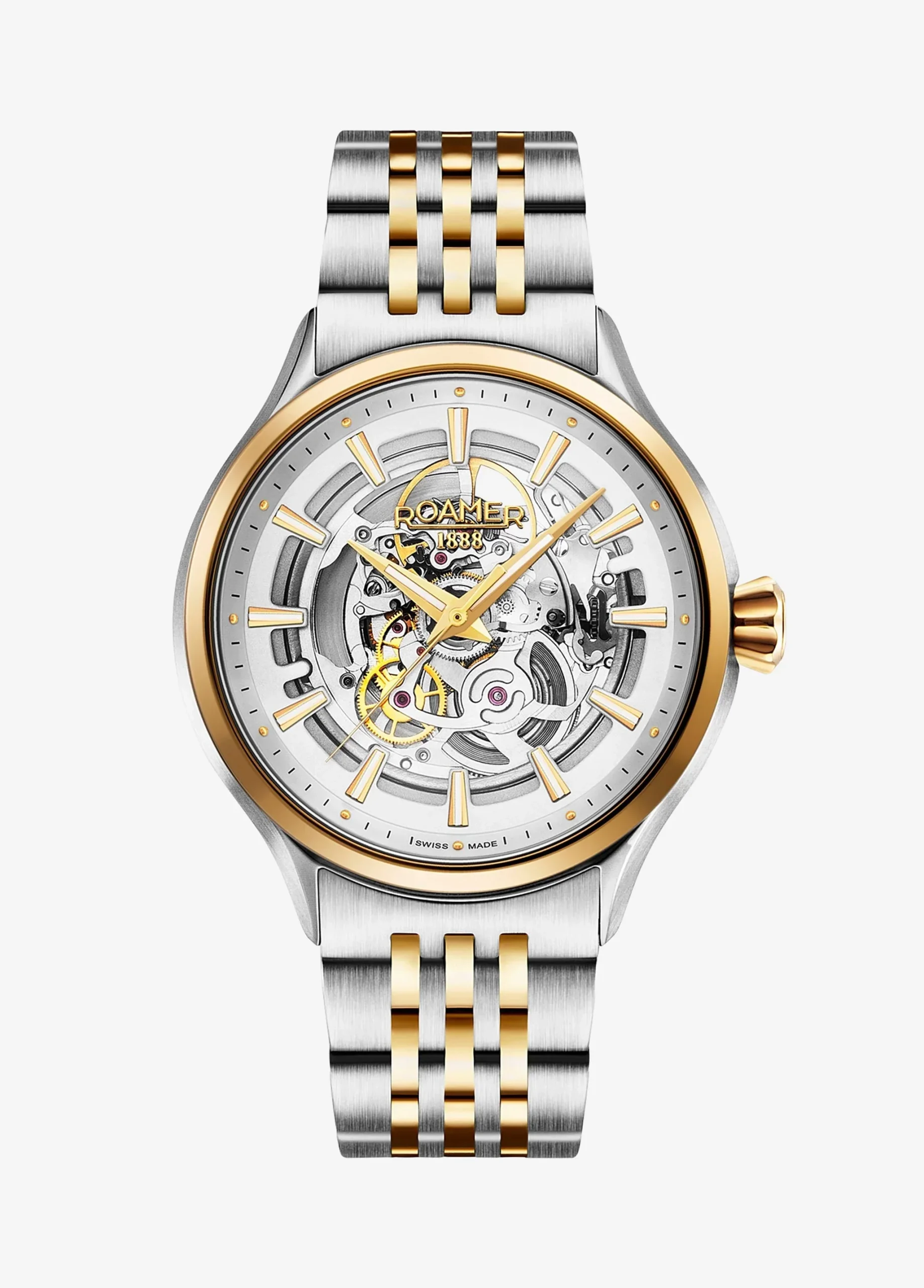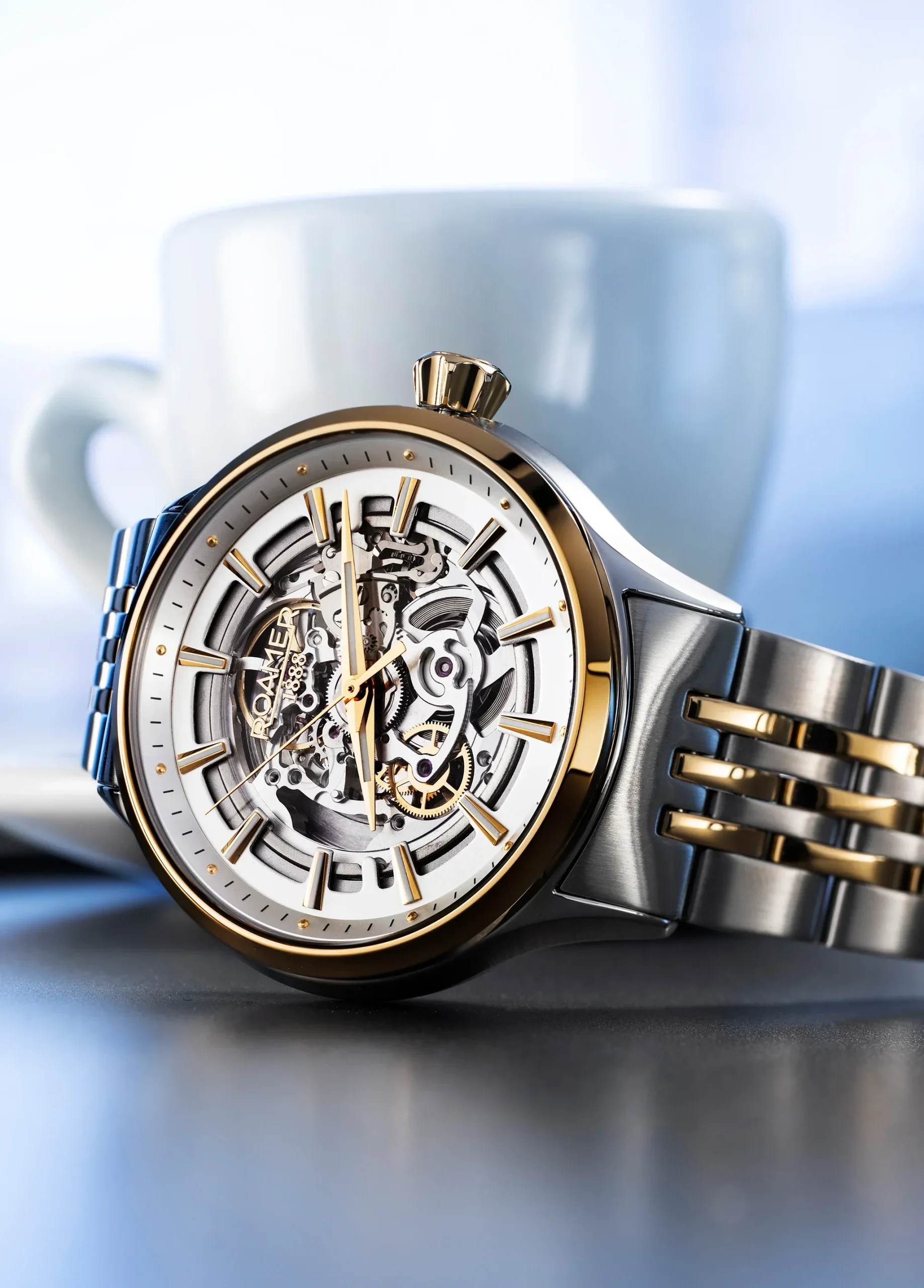 The latest COMPETENCE SKELETON version is a brilliant example of precise detail accuracy and a clear design language. The sporty and elegant COMPETENCE SKELETON III sits in a 43 mm stainless steel case and features an impressive power reserve. The open dial in skeleton design gives you a gentle tease into the interior work going on behind the minimalistic dial. Worn on a supple crocodile-embossed genuine leather strap or on a massive steel bracelet, the noble dress watch with three central hands and applied indices fascinates with style and taste.