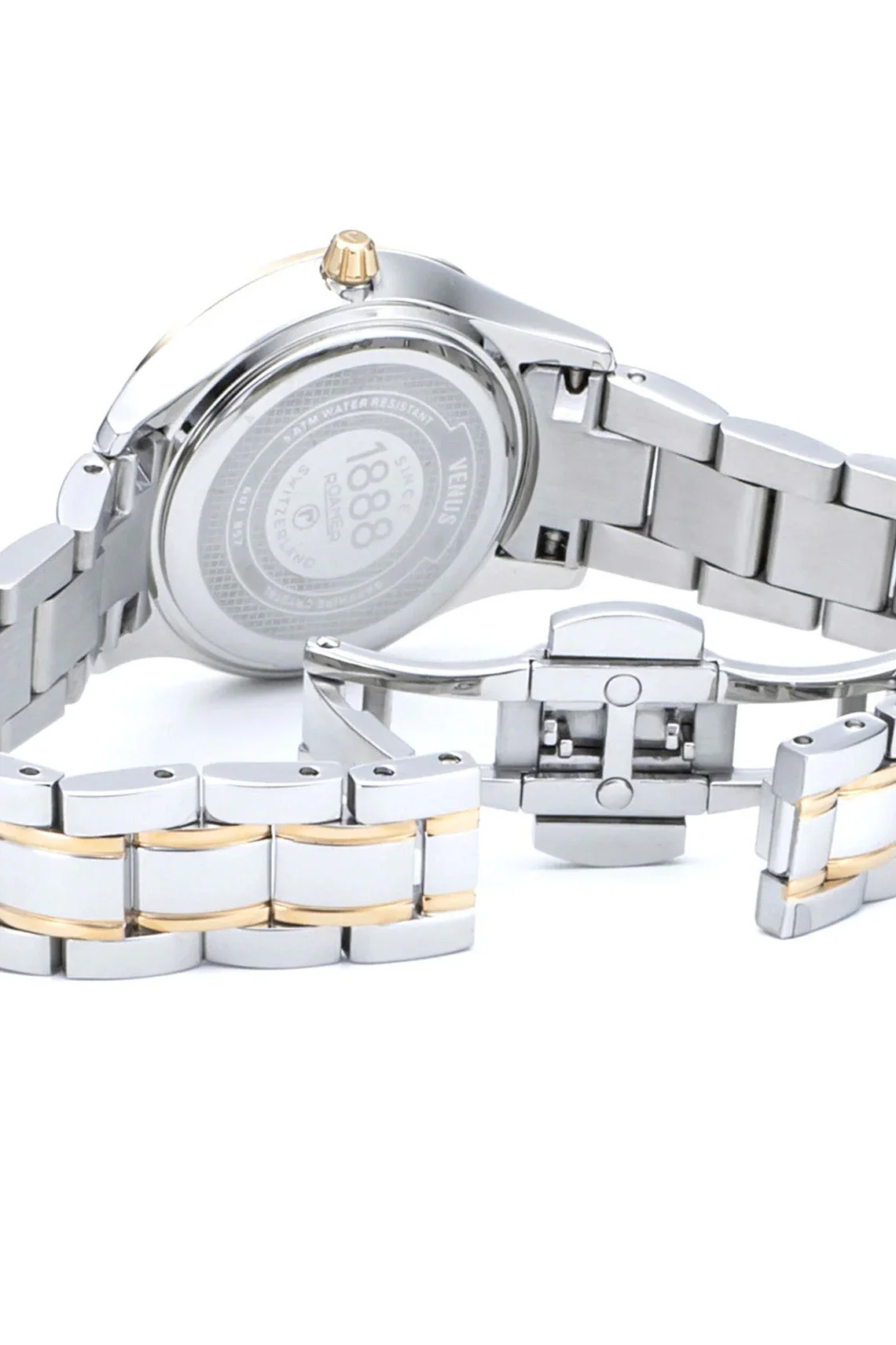 Depending on the model, the VENUS DIAMOND features hour markers, sword-shaped hands, crown and smooth bezel in stainless steel, gold, or rose gold plating.