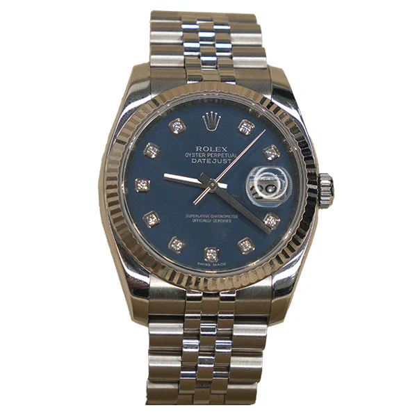 As a trusted expert in the watch industry, we present the stylish and timeless ROLEX DATEJUST 2006. With a 36mm case, this watch is versatile for any occasion. The silver and blue face adds a touch of color while the stone accents provide a touch of elegance.