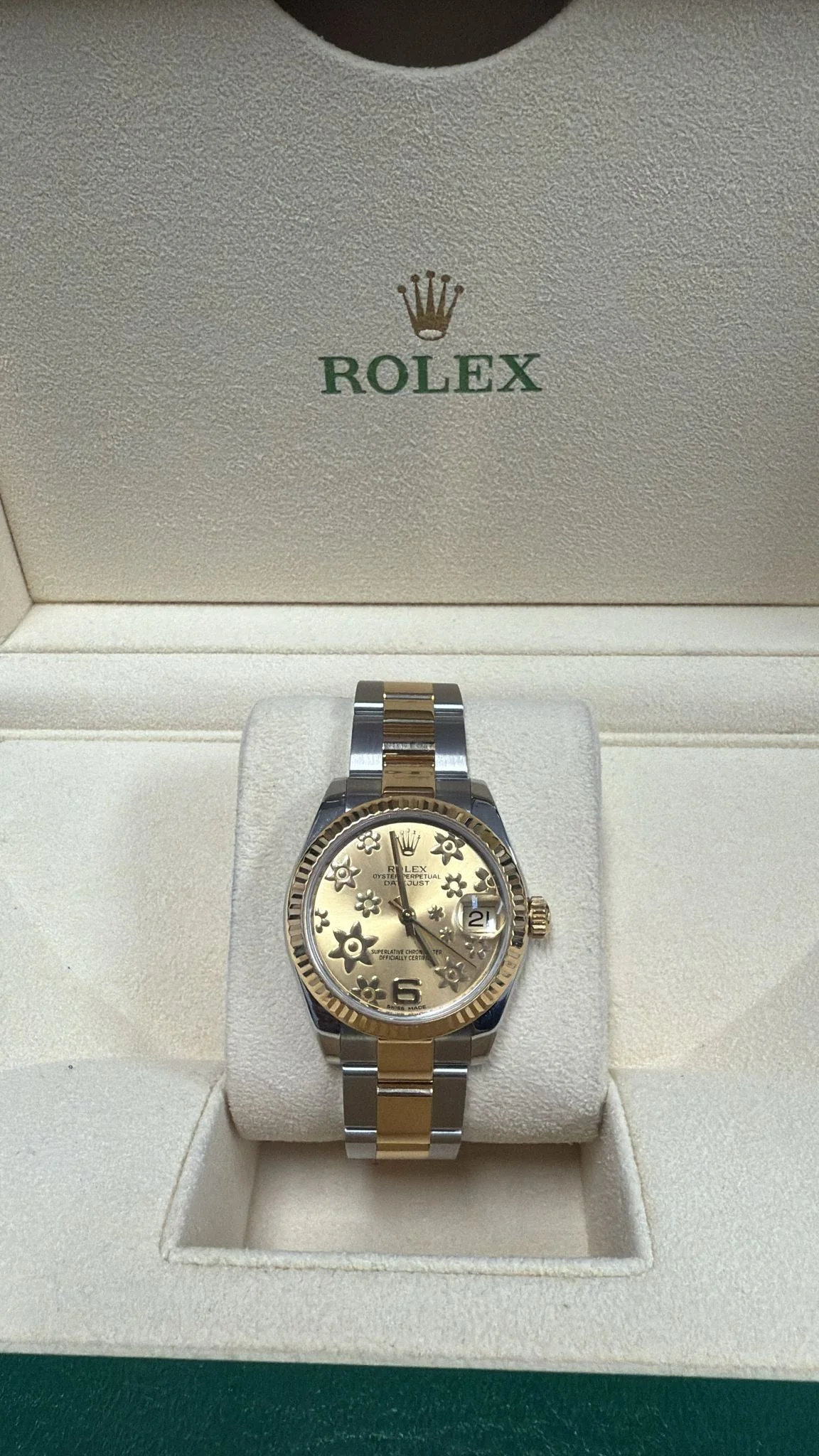 This Rolex Datejust Two Tone 31MM watch, with a 2019 model year, comes with a full box and papers. With its two-tone design and 31mm size, this timepiece is both stylish and functional. The perfect accessory for any outfit, it exudes luxury and sophistication.