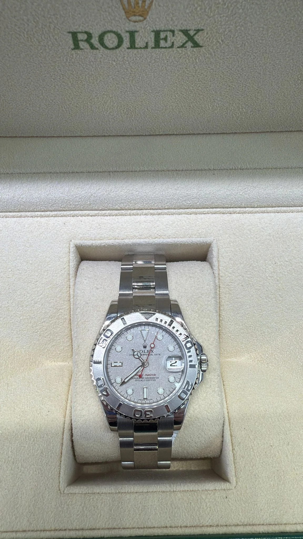 The Rolex Yacht-Master SSTel 34mm, model 168622 from 2002, combines robust stainless steel with a refined 34mm case size, offering a perfect balance of durability and elegance. Designed for maritime enthusiasts, this timepiece features a bidirectional rotatable bezel for precise time tracking on the water. Its classic design and reliable automatic movement make it a distinguished choice for collectors and professionals seeking both style and performance.