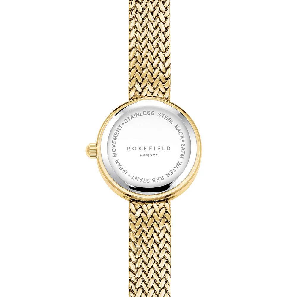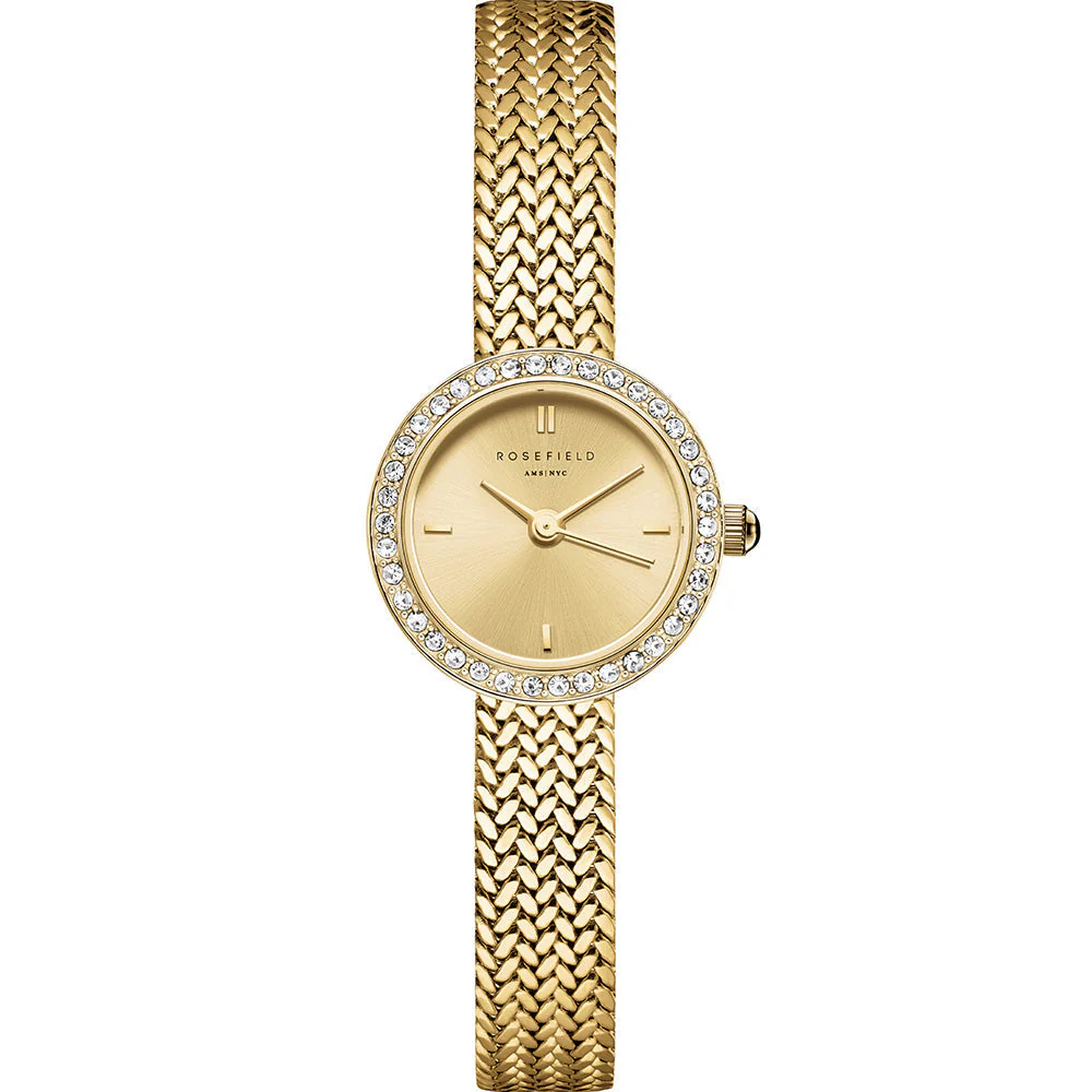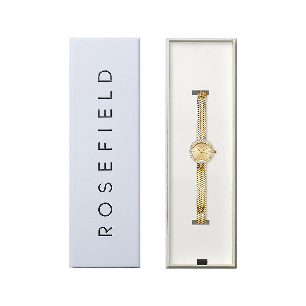 The Rosefield Mini Small Edit Crystal Gold Dial Stainless Steel Watch is the epitome of refined style, crafted for those who appreciate the artistry of modern women’s watches. Its compact gold case and radiant dial, adorned with delicate crystal accents, capture elegance in its purest form. The 23k gold-plated stainless steel band adds a touch of luxury, while the minimalist face and jewelry clasp complete a look of effortless sophistication. Precision quartz movement and mineral glass offer durability and reliable timekeeping, while 30 meters of water resistance ensures practical everyday wear. This timepiece by Rosefield is both a statement and a staple, seamlessly complementing every outfit with understated glamour.