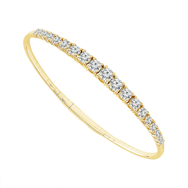 Our 14k Gold Royal Crown Bangle is a testament to timeless beauty and enduring style. Available in yellow, white, or rose gold, this bangle captivates with 19 round stones totaling 2.75 carats. Each diamond, of IJ color and I1 clarity, is meticulously set in a prong setting along the bangle’s arc, offering a resplendent shimmer with every movement.