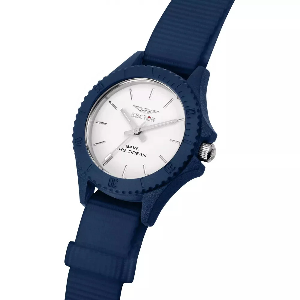 The Sector Ladies Save The Ocean Blue Nato Watch R3251539502 is a perfect blend of style and sustainability. Made from ocean plastic, each purchase helps reduce plastic pollution and protect our oceans. With a bold blue nato strap and dependable Swiss movement, this watch makes a statement while making a positive impact.