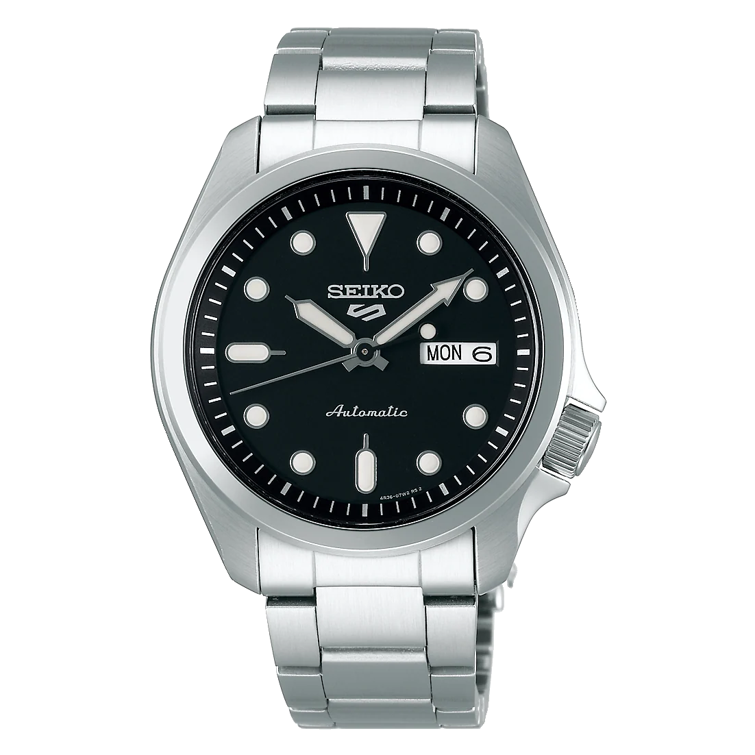 From the iconic Seiko 5 Sports series and featuring a 4R36 automatic movement with approximately 41 hours power reserve, this silver with black dial watch is perfect for any occasion. Taking inspiration from the original Seiko 5s of the 1960’s, this classic vintage looking watch is a staple piece for any collection. It features a stainless-steel case and bracelet, 100m water resistant, day/date display and a recessed crown at the 4 oclock position. With durable Hardlex glass, exhibition case back and Seikos Lumi brite hands and markers this automatic watch will last the test of time.
