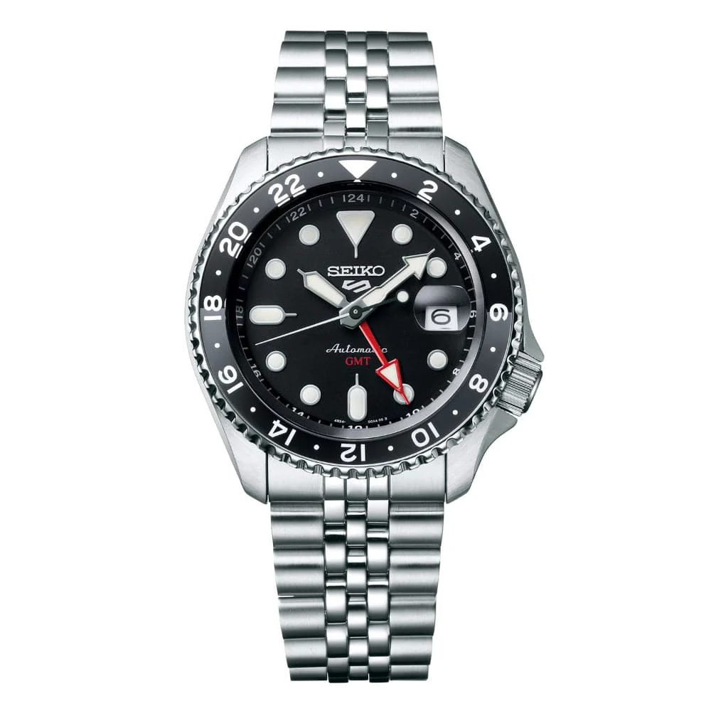 Seiko 5 Sports GMT Black Dial With Silver Stainless Steel Strap Men Watch SSK001K1P