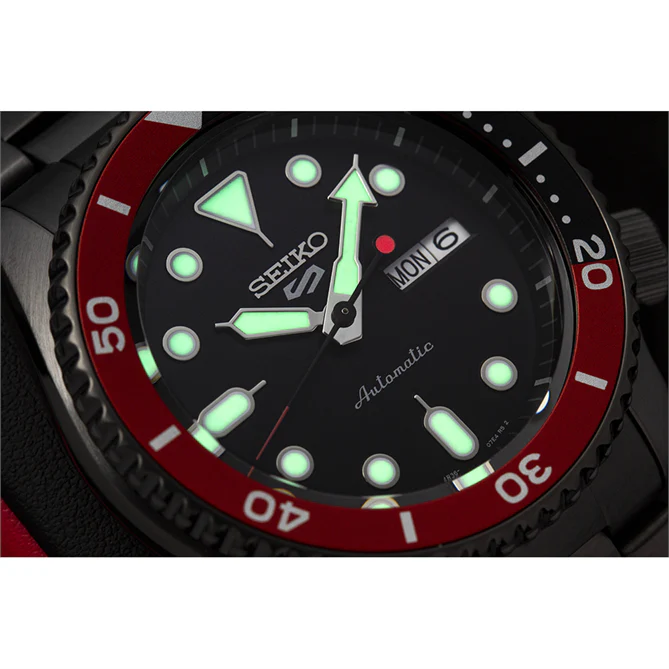 The watch also boasts an innovative day-date feature positioned at 3 o’clock, a testament to Seiko’s focus on functionality. Powered by the Calibre 4R36, this watch offers a substantial 41-hour power reserve. This reliable movement is visible through the watch’s transparent caseback, allowing you to appreciate the artistry and engineering that define Seiko’s reputation in the watchmaking world.