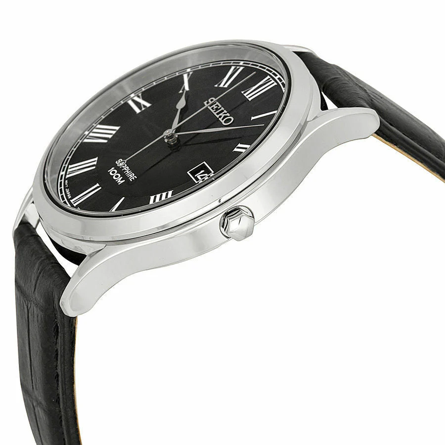 Seiko Black Dial Black Leather Mens Watch quantity