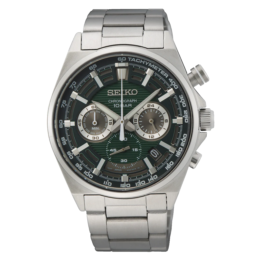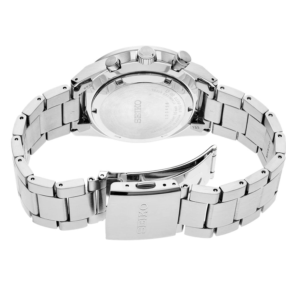 Experience the unparalleled elegance of the Seiko Conceptual Series chronograph men’s watch, a bold timepiece that reflects sophistication and performance. It features a striking green dial with luminous hands and indices, housed within a robust 41 millimetre stainless steel case that is 12.3 millimetres thick. Powered by a precise Calibre 8T63 quartz chronograph movement with an approximate three-year battery life, it offers reliable timekeeping and chronograph functionality up to 60 minutes. Secured by a stainless steel bracelet, this watch is protected by Hardlex glass and 100-metre water resistance, blending functionality with a refined, contemporary design.