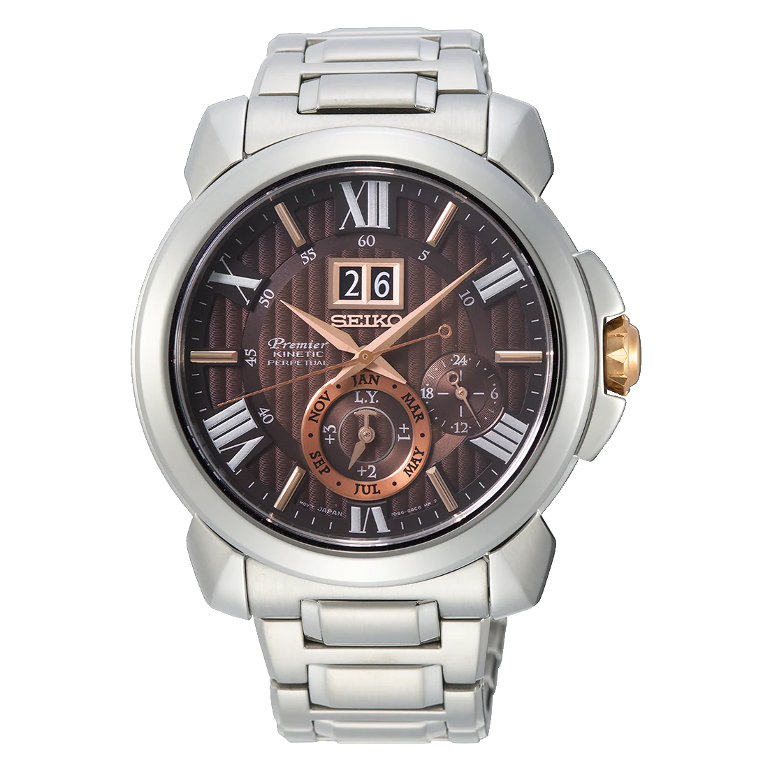 What sets this timepiece apart is its kinetic power source, a marvel of modern horology. This movement harnesses the energy generated from your motions, converting it into electrical energy to power the watch. This not only eliminates the need for frequent battery replacements but also underscores Seiko’s commitment to sustainable innovation. The watch features an intricate perpetual calendar, a hallmark of convenience and precision, ensuring the correct date is always displayed without the need for manual adjustment, regardless of leap years or varying month lengths.