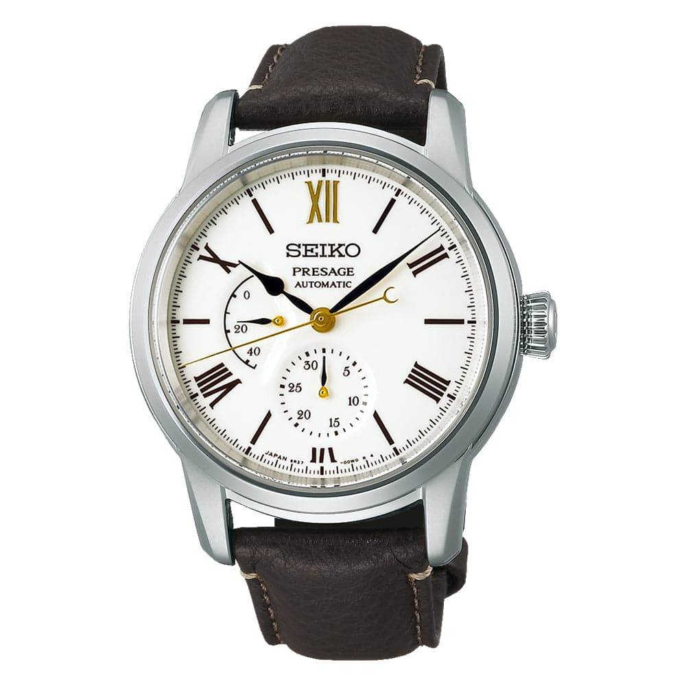 The new Presage SPB397J1 limited edition watch adopts a new case shape with refined angles and an elegant sense of proportion. The case structure is designed to highlight the handcrafted dials while giving the watch a slimmer look on the wrist. The Presage porcelain dial is made by an experienced Arita porcelain craftsman, who has been producing porcelain since 1830. The movement of this model is the high performance Seiko caliber 6R27, with a sub-dial at 6 o’clock for the date and a power reserve indicator at 9 o’clock. The watch is presented on a dark brown leather strap. Limited edition of 1,500 pieces worldwide.