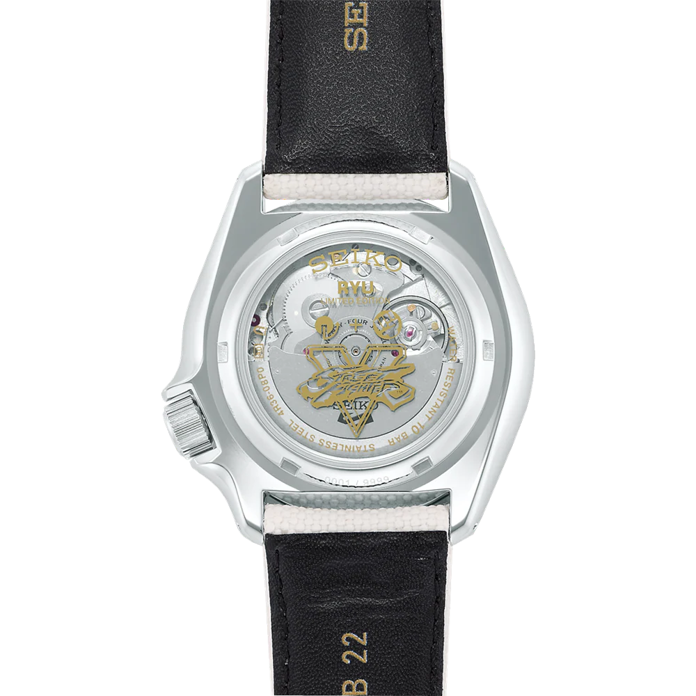 The watch’s design is inspired by his classic “do-gi” Judo uniform, and the scratch-like marks across the bezel reflect the tough training required of Ryu to become a “true fighter”. At the 9 o’clock position is a simplified version of the iconic “Furinkazan” kanji characteristics on his gloves, which signify “as swift as the wind, as gentle as forest, as fierce as fire and as unshakable as the mountain.” These four characters are also printed on the back of the strap while the controller command for his special move, “Hadoken” is discreetly printed on the case back. Limited Edition 9,999 pieces worldwide. Presented In a Special Box.