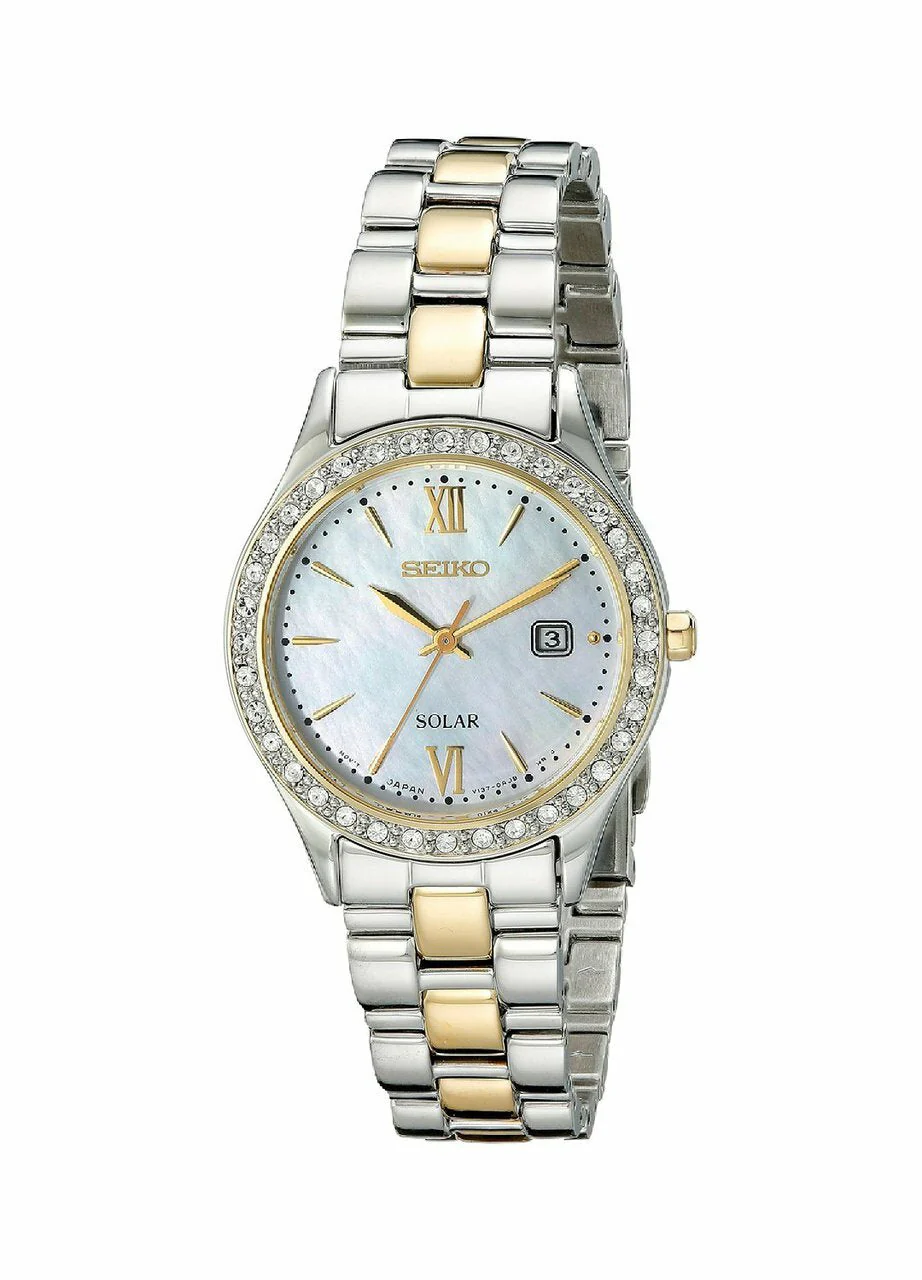 Seiko Womens Sut074 Dress Two-Tone Stainless Steel Swarovski Crystal-Accented Solar Watch
