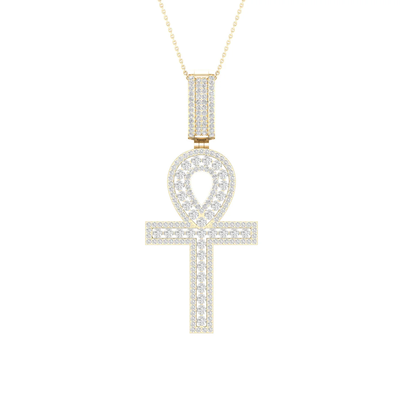 Introducing the serene beauty of our Elegant 10K Yellow Gold Diamond Ankh Pendant. This pendant, graced with 0.50 carats of finely cut diamonds, casts a warm glow with its H – I color and I1 – I2 clarity. Crafted in lustrous 10k yellow gold, the Ankh symbol—representing eternal life—shines anew, redefined with a touch of modern luxury and timeless grace.
