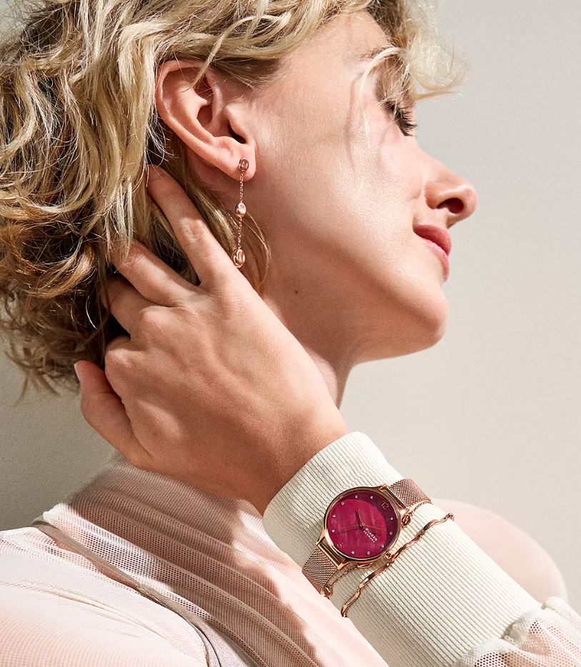 Beyond aesthetics, the Skagen Anita is engineered for performance. Its precise movement ensures accurate timekeeping, making it a reliable companion for the woman who values both style and substance. With its harmonious blend of beauty and functionality, the Skagen Anita Rose Gold Mesh Watch with Red Dial for Women is more than just a timepiece—it’s a celebration of elegance and individuality.