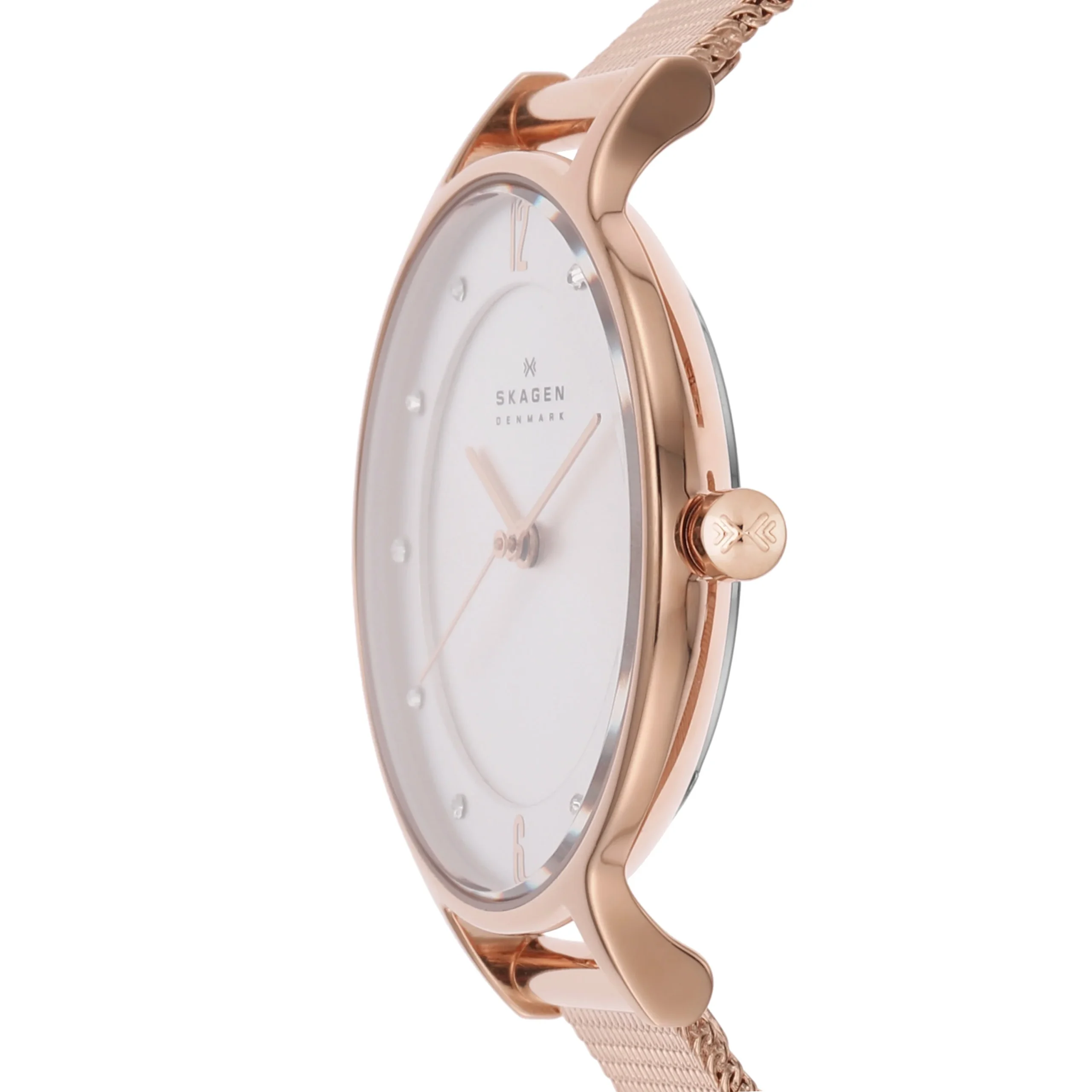 Immerse yourself in the timeless beauty of the Skagen Anita Rose Gold Women’s Watch, model SKW2151. This exquisite timepiece is a harmonious blend of classic design and modern sophistication, a true testament to the art of watchmaking. Crafted for the discerning woman who values elegance, this watch seamlessly integrates into any wardrobe, offering a touch of refined grace to every outfit.
