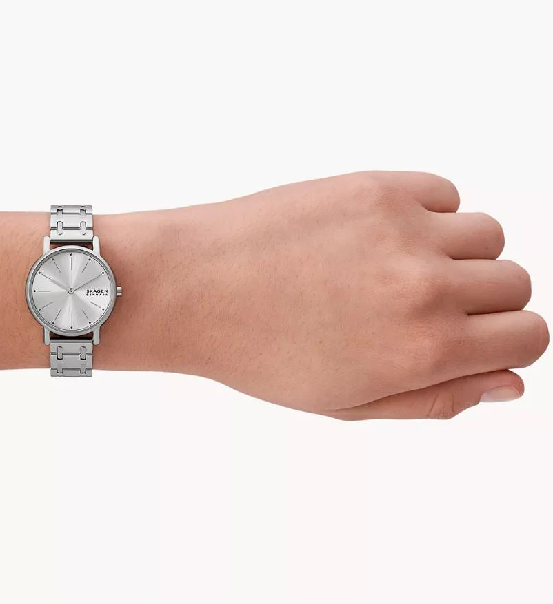 With the Skagen Signatur Lille Silver Stainless Steel Bracelet Watch, you can elevate your look and make a bold statement wherever you go.