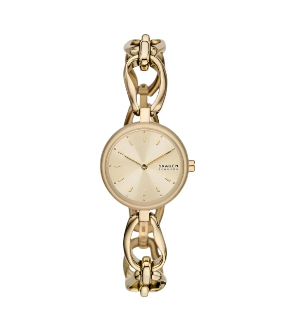 Elevate your style with the Skagen Signatur Lille watch. Crafted from gold stainless steel, this two-hand watch is both elegant and functional.