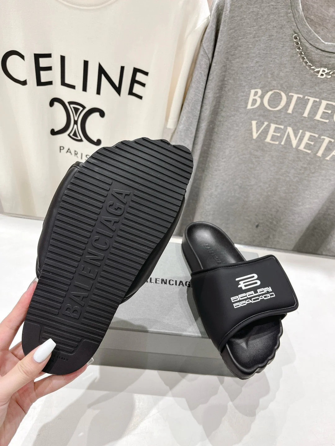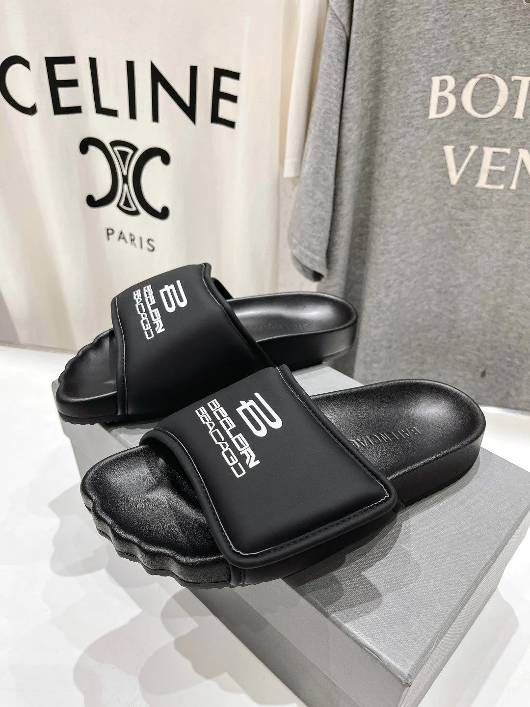 SLIDE SANDALS IN BLACK NYLON AND RUBBER WHITE PRINT