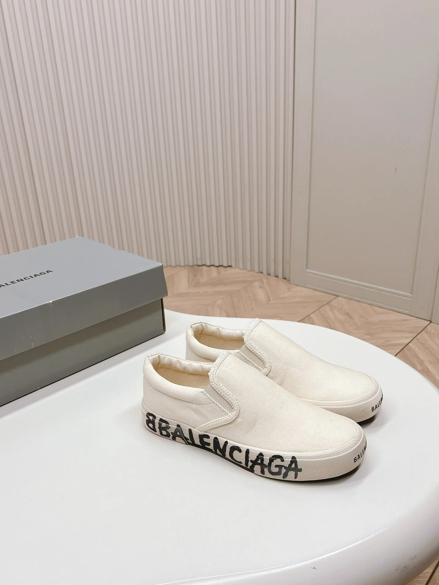 SLIP-ON SNEAKERS GRAFFITI IN WHITE CANVAS