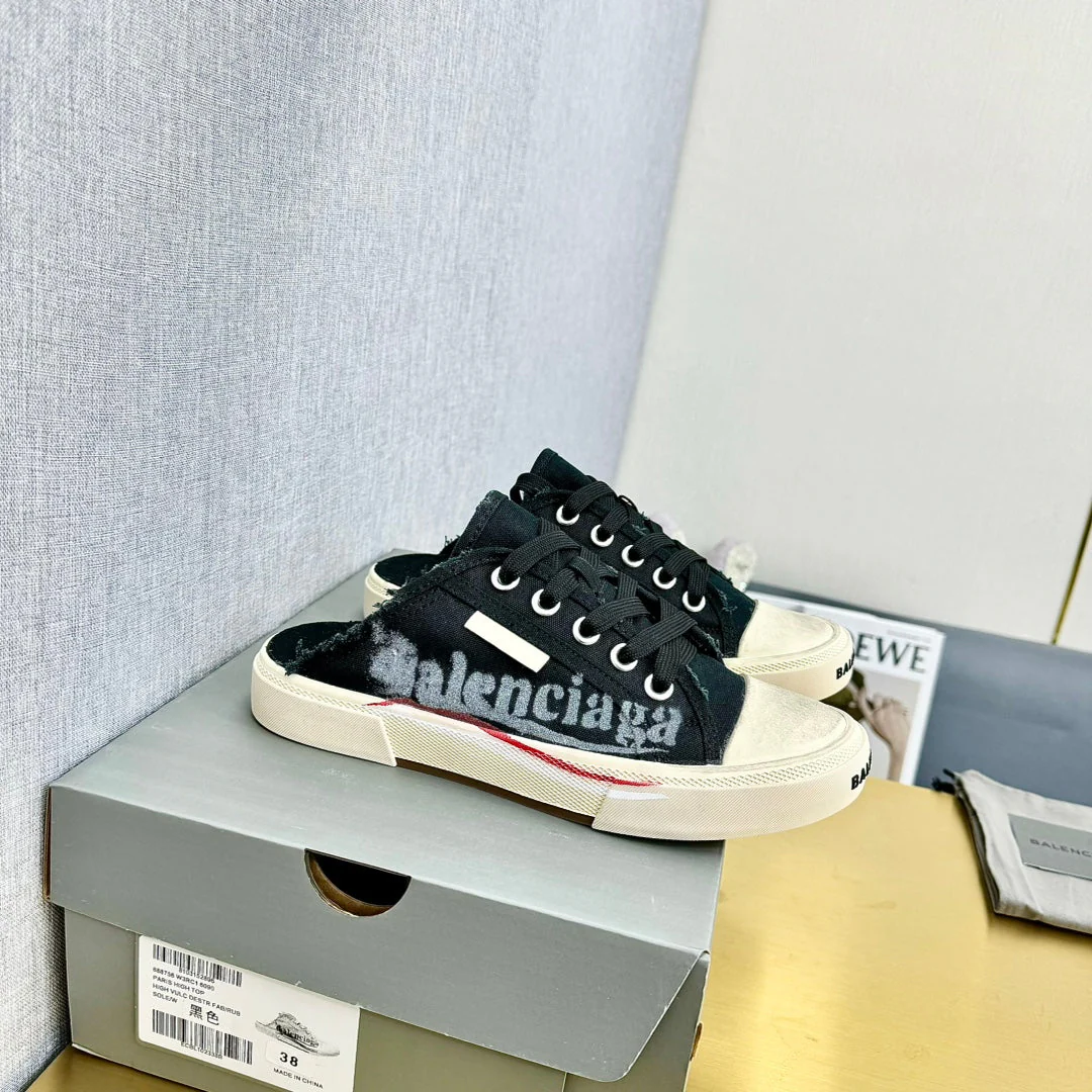SNEAKER MULES IN BLACK CANVAS GRAFFITI LOGO