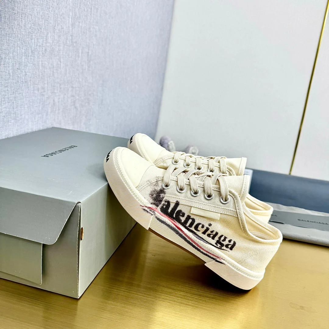SNEAKERS IN WHITE CANVAS GRAFFITI LOGO