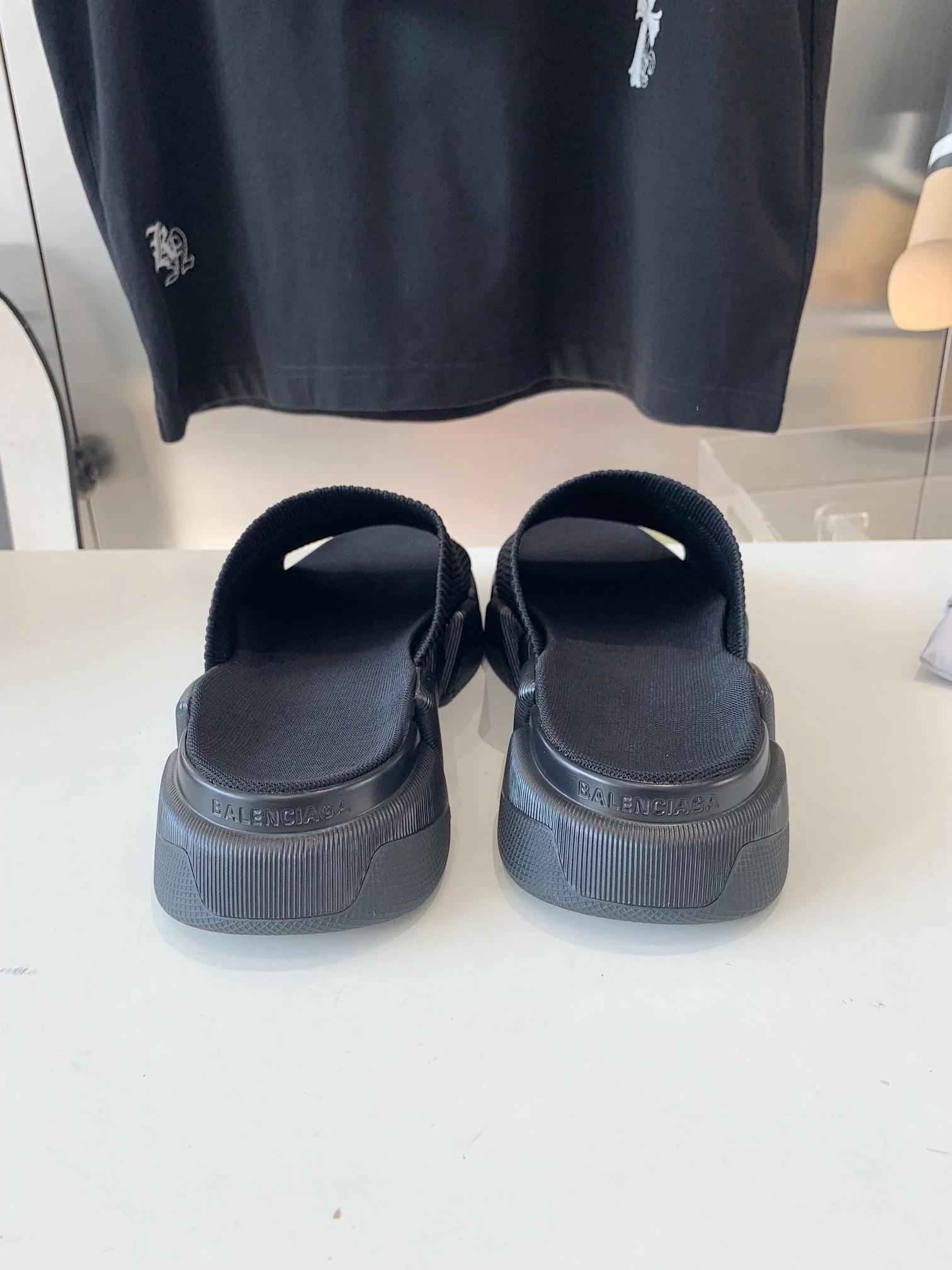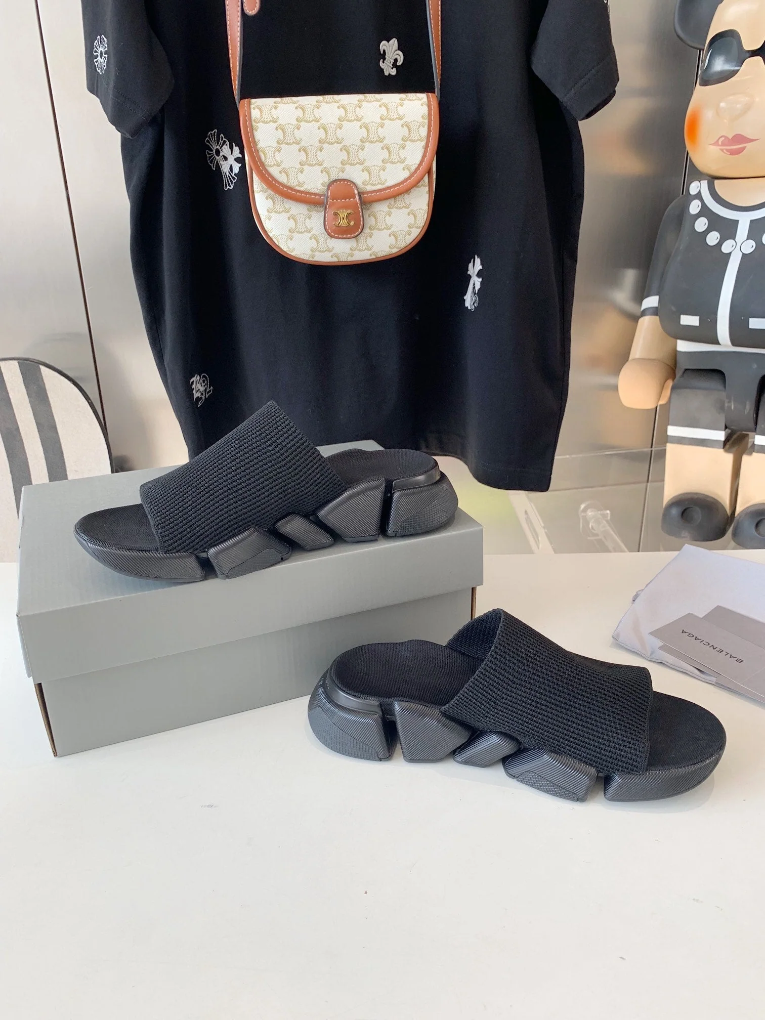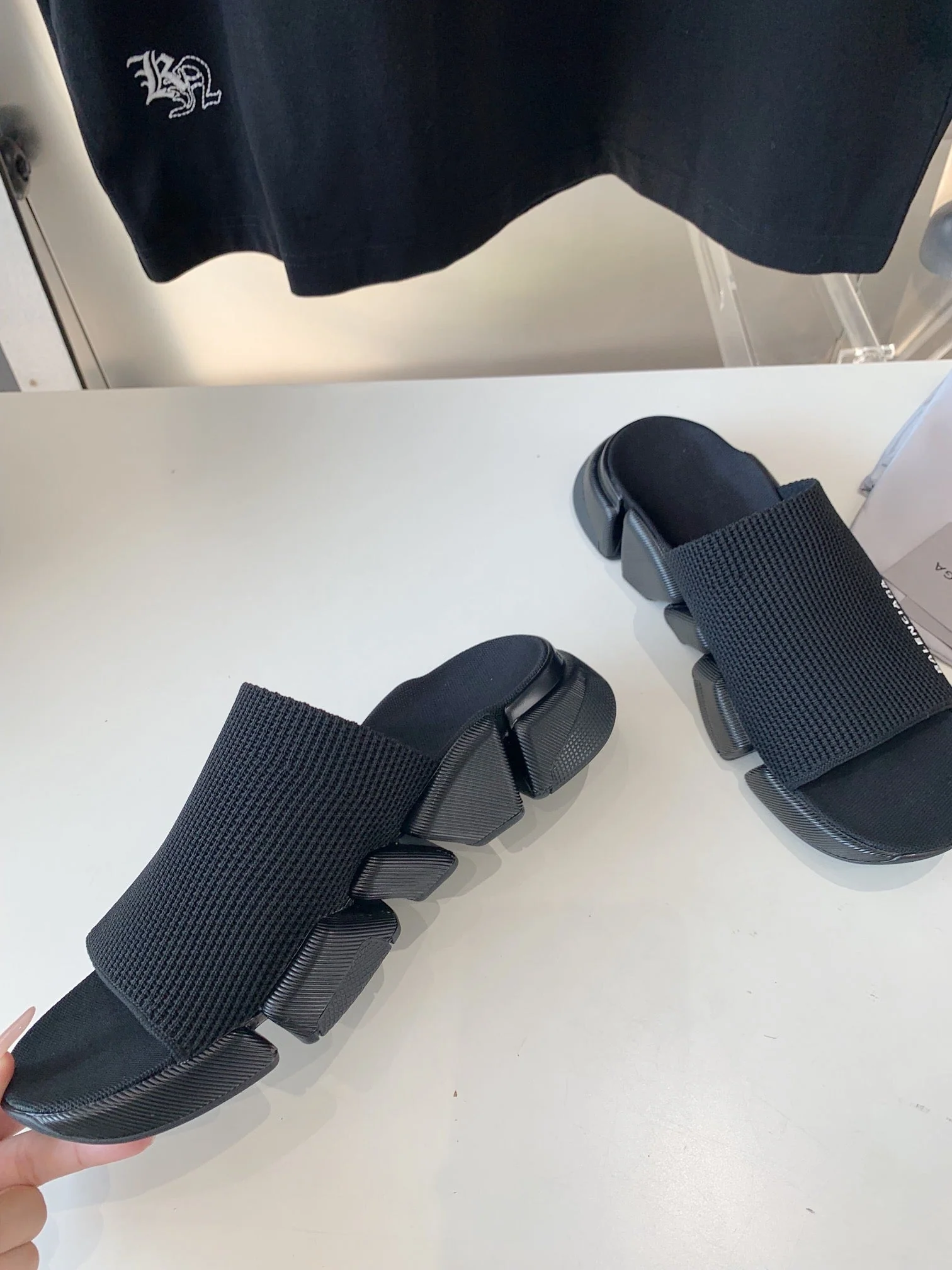 SPEED 2.0 SLIDE SANDAL IN BLACK RECYCLED KNIT AND BLACK SOLE