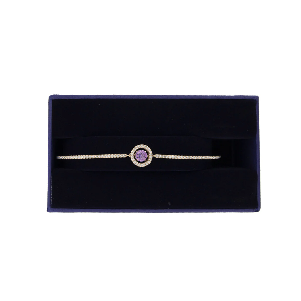 Discover the radiance of the Swarovski Rose Gold Sparkling Dance Bangle. This delicate piece features a unique rose gold-plated design, with a centrepiece pink crystal that captures the light beautifully. The surrounding clear crystal pavé enhances its sparkle. Its sleek bangle style is finished with an adjustable chain clasp, ensuring a bespoke fit for any wrist.