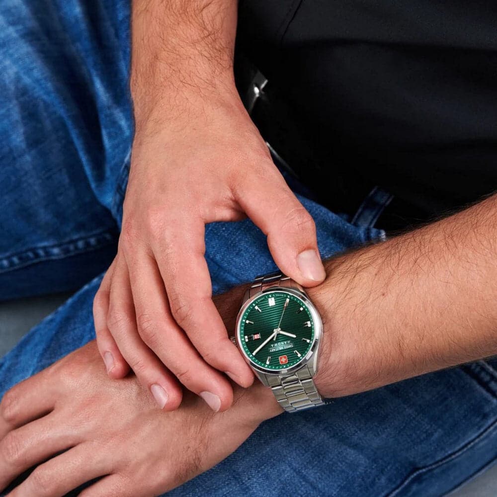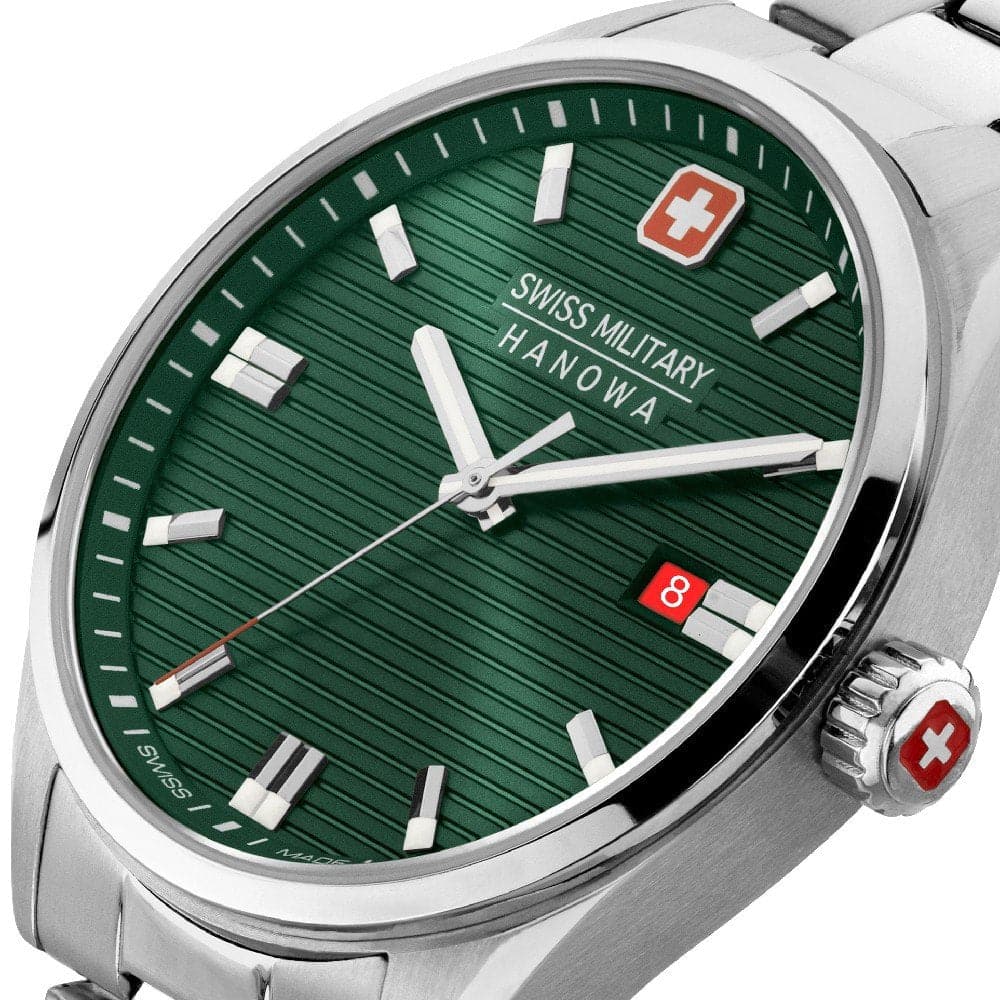 Swiss Military Hanowa Roadrunner SMWGH2200105 is a practical and handsome Gents watch. Material of the case is Stainless Steel while the dial color is Green. In regard to the water resistance, the watch has a water resistance of 100 meters. This makes it suitable for swimming, but not high impact water sports.
