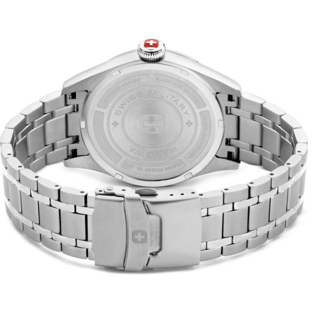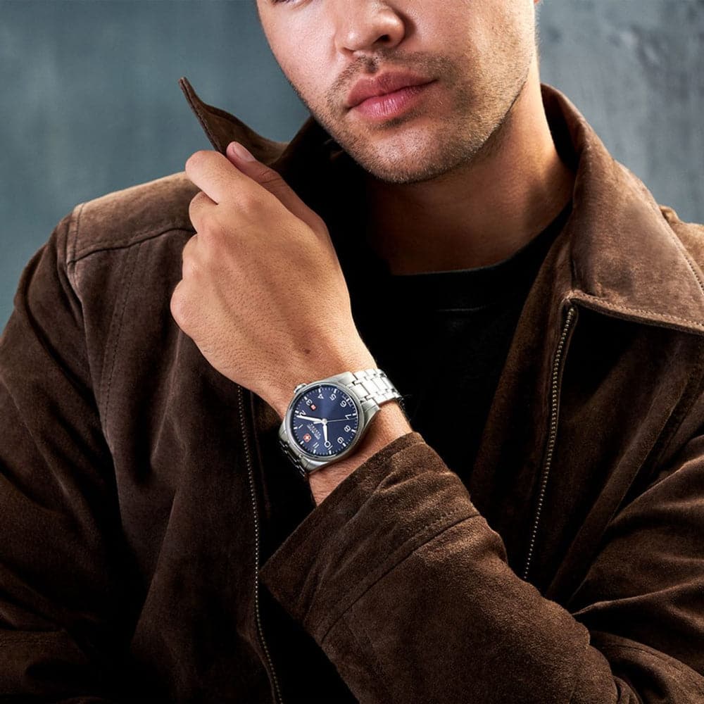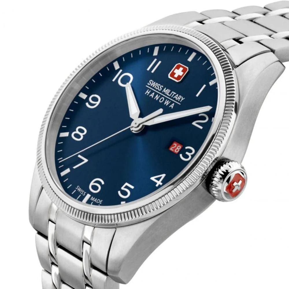 Swiss Military Hanowa Thunderbolt SMWGH0000802 is a functional and attractive Gents watch. Material of the case is Stainless Steel, and the blue dial gives the watch that unique look. This model has 100 meters water resistance – it is suitable for swimming, but not high impact.