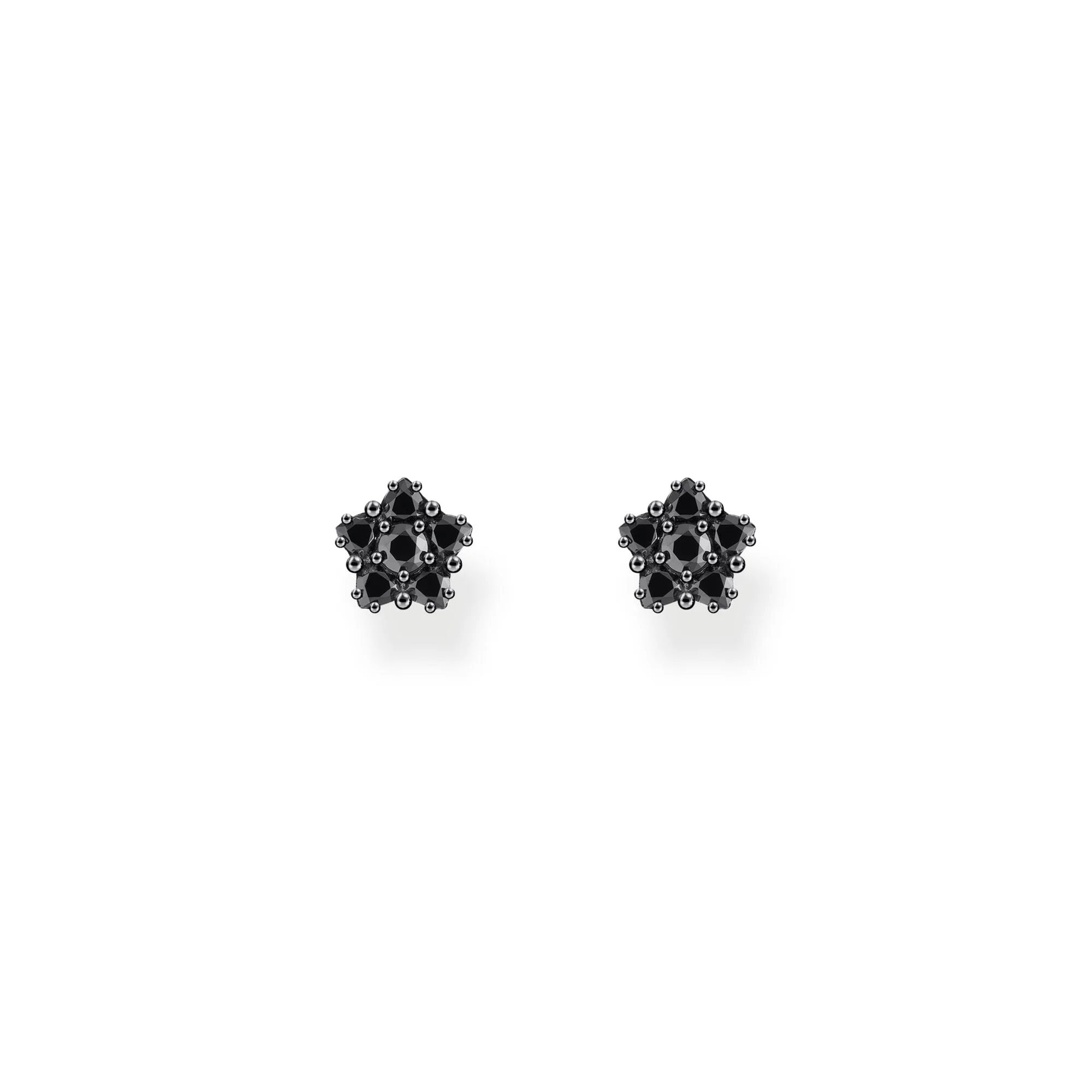 Thomas Sabo Blackened Flower ear studs showcase refined craftsmanship, featuring five heart-shaped black zirconia stones arranged elegantly around a polished center. The unique black-silver contrast lends these unisex earrings a contemporary edge, underscoring their modern allure. Expertly made from recycled silver, each stud embodies both sustainability and luxury. Perfect for those who appreciate striking yet sophisticated jewelry, these floral ear studs stand out as an expressive detail for any look, reflecting the innovative spirit and prestige of Thomas Sabo’s celebrated designs.