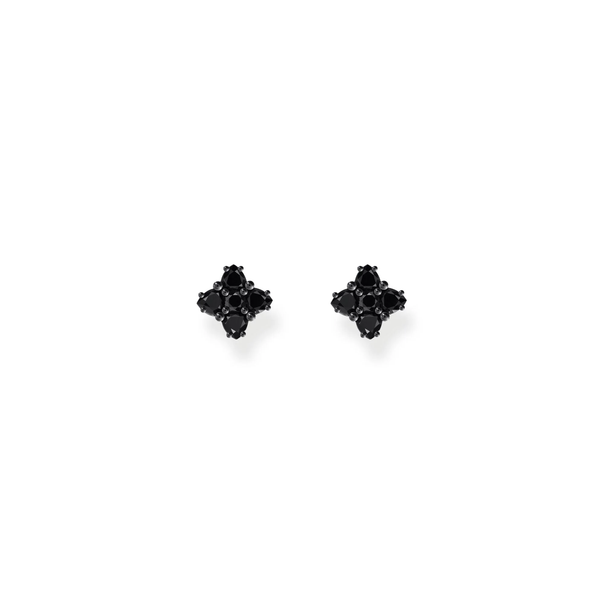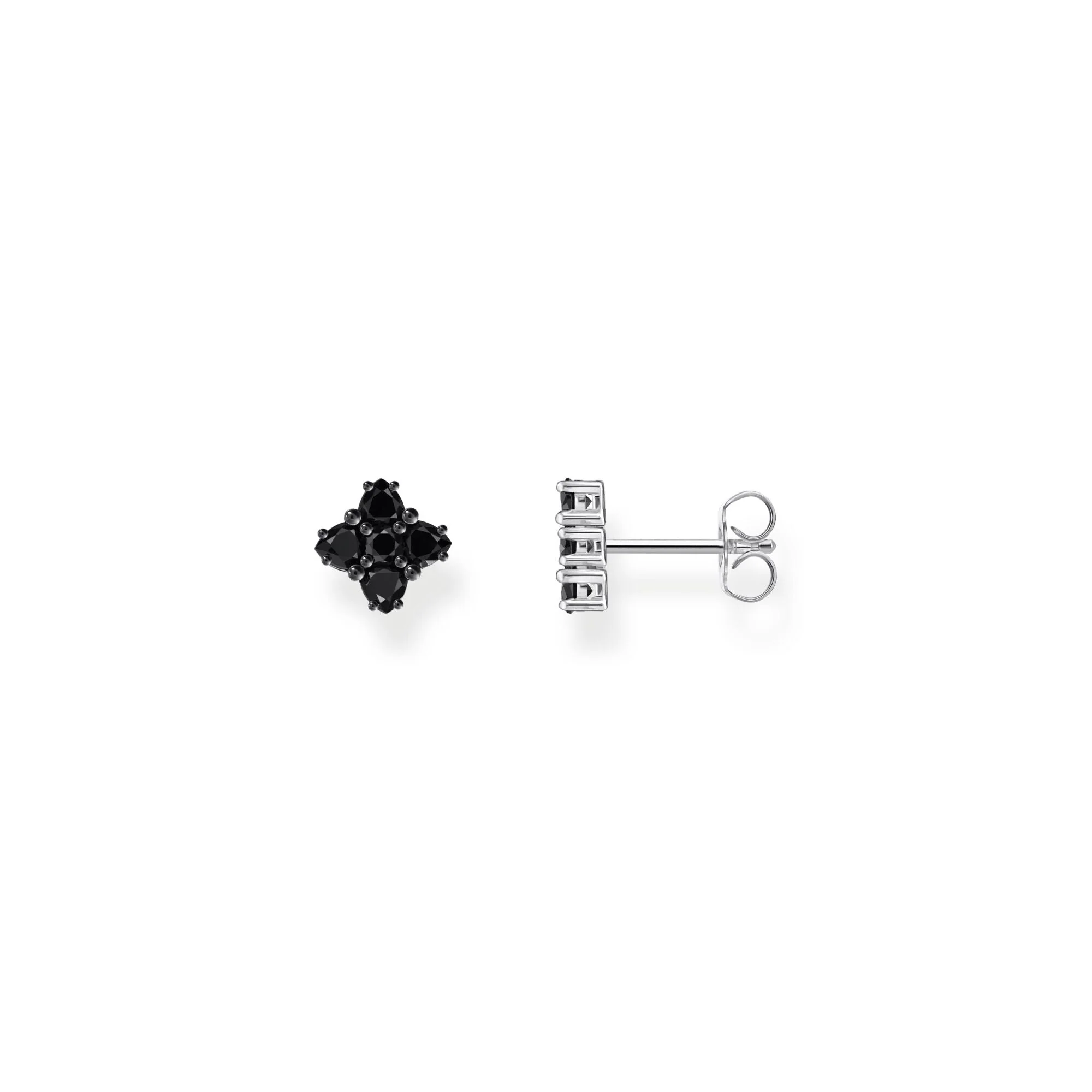 Thomas Sabo presents blackened ear studs crafted from recycled silver and adorned with four heart-shaped black zirconia stones radiating from a polished round center. Inspired by nature, these unisex earrings combine modern design with refined glamour, reflecting the brand’s reputation for expressive, high-quality craftsmanship. The small floral motif creates a striking yet subtle accent, perfect for elevating both everyday and special occasion looks with a sophisticated edge.