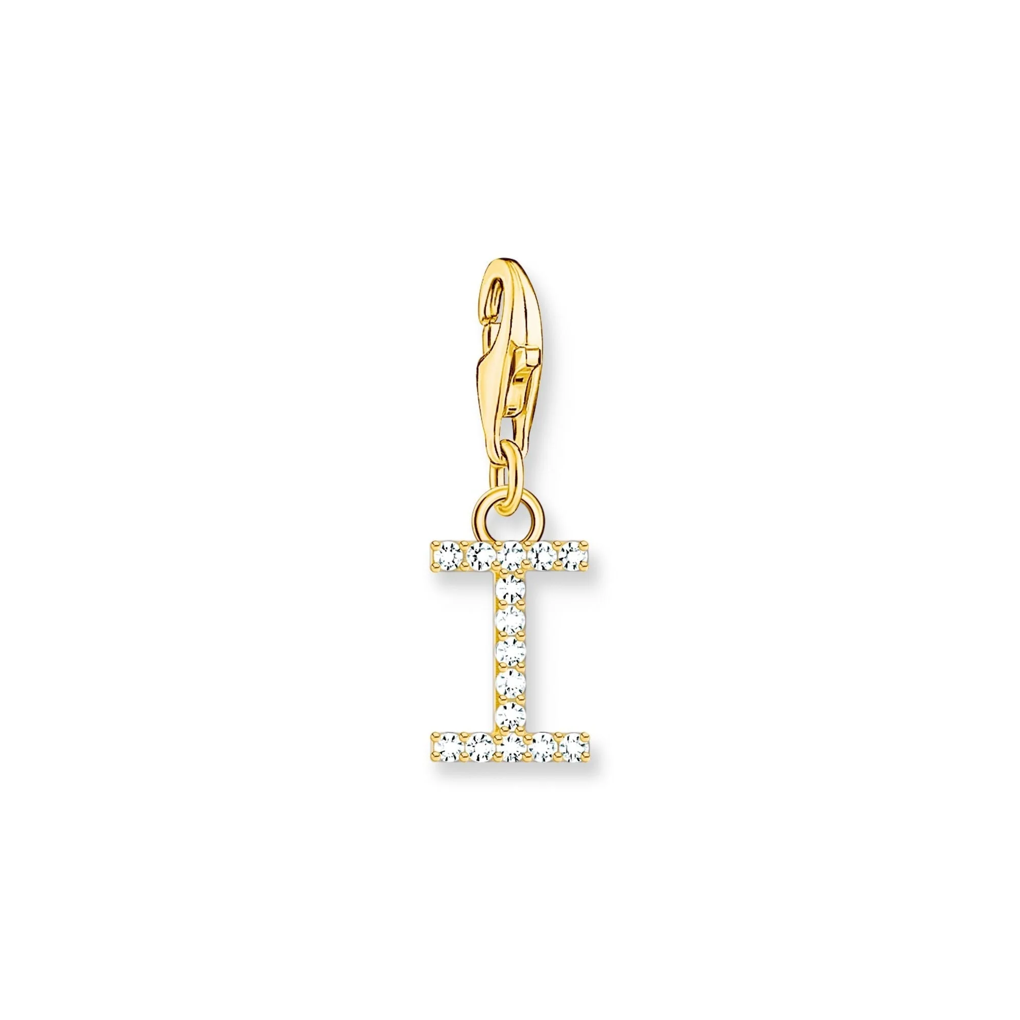 Exquisitely crafted from 925 sterling silver and highlighted with a radiant gold-plated finish, this Thomas Sabo charm pendant presents a refined letter I adorned with shimmering white zirconia. The modern design, defined by its gleaming surfaces and minimalist elegance, seamlessly enhances any women’s jewelry selection. An easy-to-use lobster clasp adds both security and versatility, allowing for effortless styling on bracelets or necklaces. Add a touch of personal expression and sophistication with this cherished piece from the world-renowned Thomas Sabo collection.