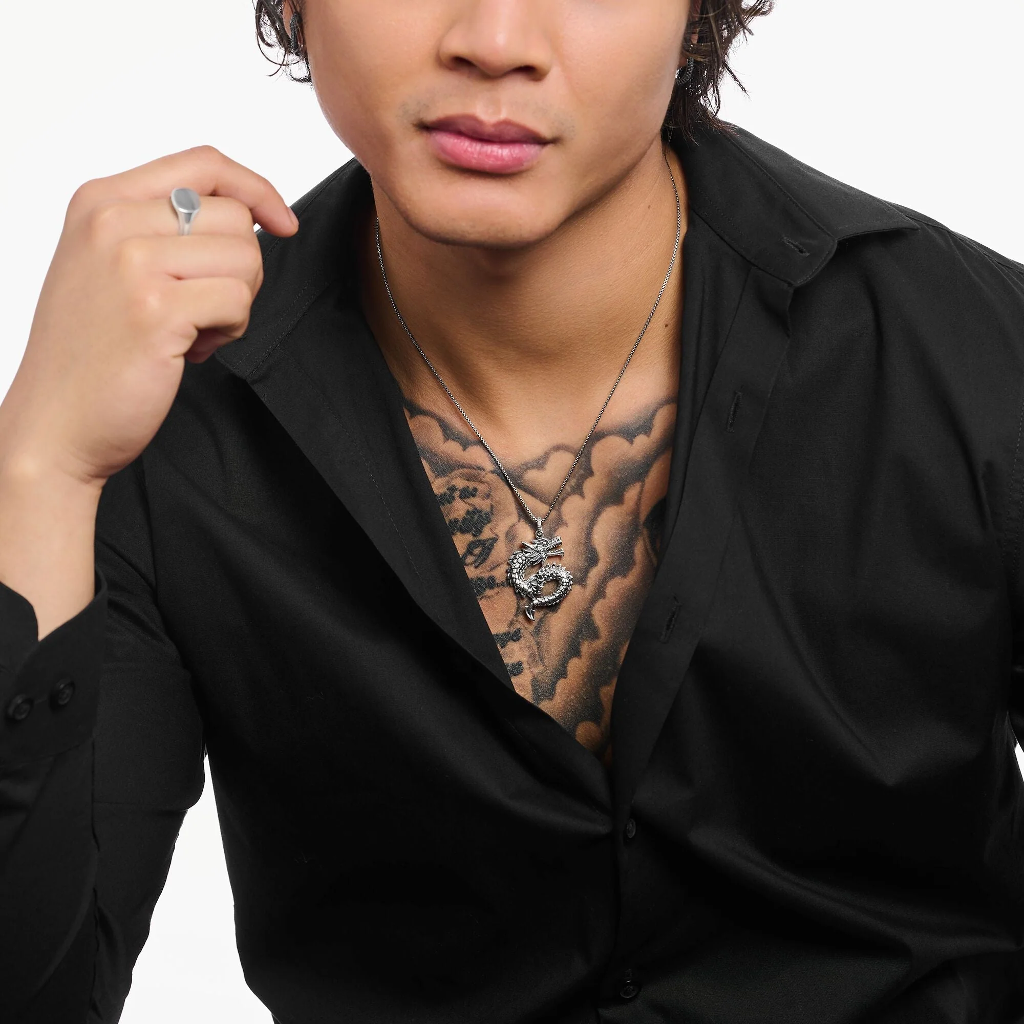 This THOMAS SABO dragon pendant embodies the brand’s renowned artistry, crafted from recycled silver with a bold, curved silhouette and intricate scale pattern. The striking dragon’s head speaks of strength, courage, and elegance, while subtle blackened accents enhance its captivating details. Perfect for those who appreciate imaginative design, this unisex jewelry piece brings a refined statement to any look, reflecting Thomas Sabo’s reputation for modern glamour and distinctive style.