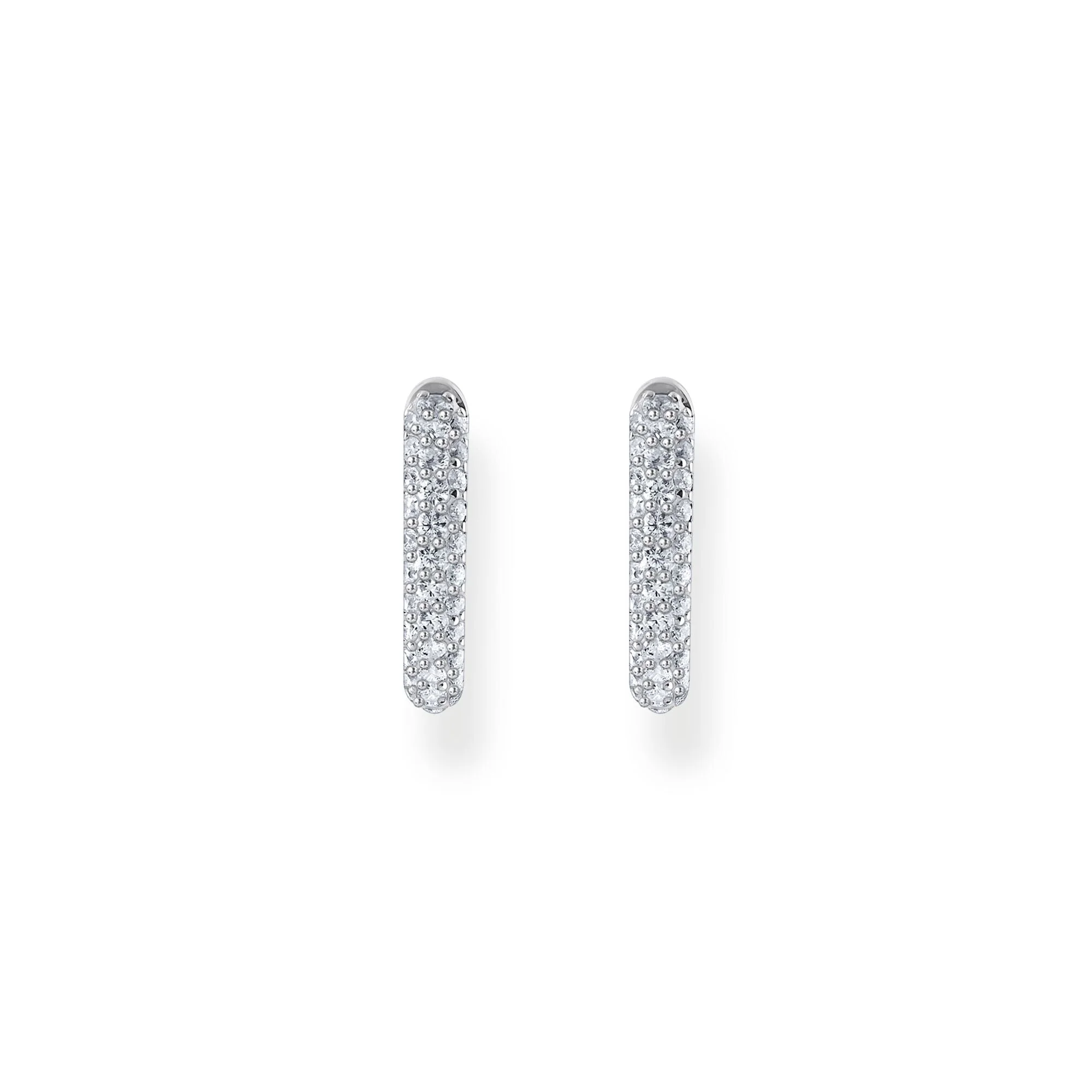 These THOMAS SABO hoop earrings feature a refined creole silhouette, elegantly set with fine white zirconia pavé for a radiant, sophisticated touch. Crafted from recycled silver and secured with a sleek clip fastening, each piece embodies the brand’s modern design language and commitment to quality. Perfect for elevating a women’s jewelry collection, these earrings offer timeless beauty and a touch of glamour that seamlessly transitions from day to evening wear.
