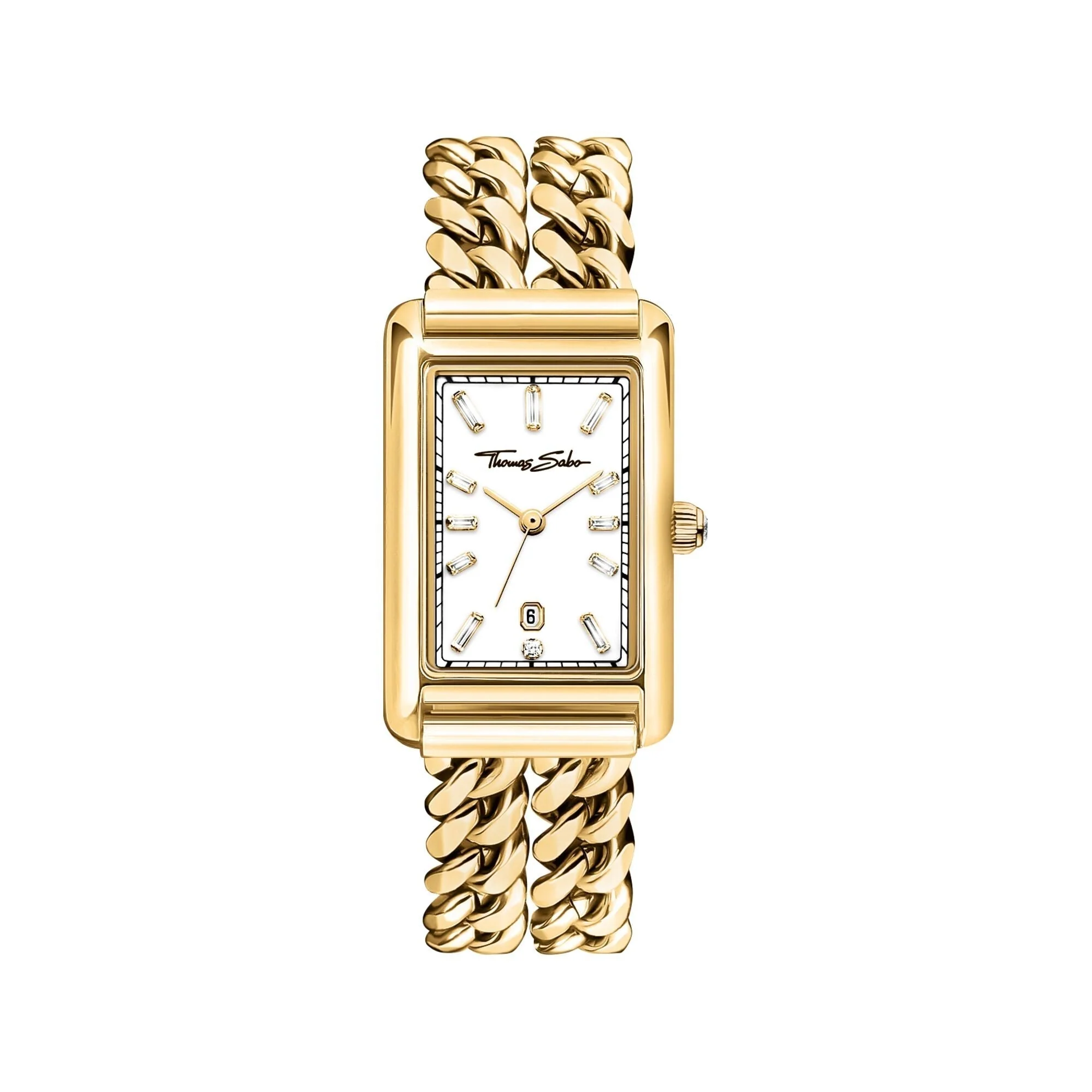 Combining refined elegance with contemporary aesthetics, the THOMAS SABO Ladies Rectangular Watch in Gold is a striking expression of modern luxury. Crafted for women who appreciate timeless style, this luxury watch features a sleek rectangular case finished in radiant gold, offering a sophisticated alternative within the women’s watches category. The minimalist dial complements the polished bracelet strap, creating a seamless blend of precision and glamour that sets it apart from typical timepieces.